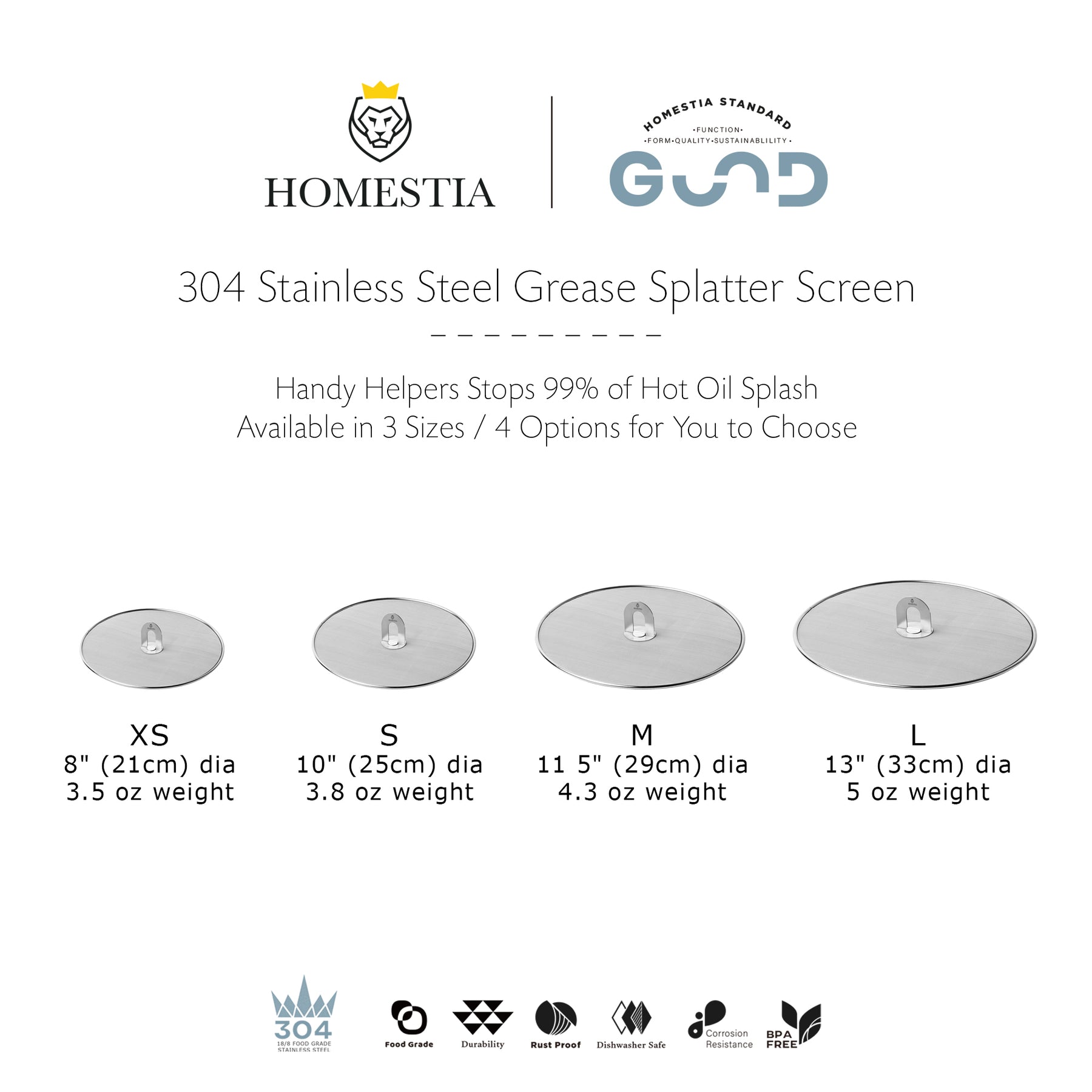 The stainless steel mesh splatter screen is the best option for most high-heat frying and sautéing, as it allows optimal evaporation and is incredibly sturdy even at the highest heat. The extra-fine mesh blocks water and oil splatters and won't warp and rust over time. It is exceptionally durable due to the rigid metal spine.