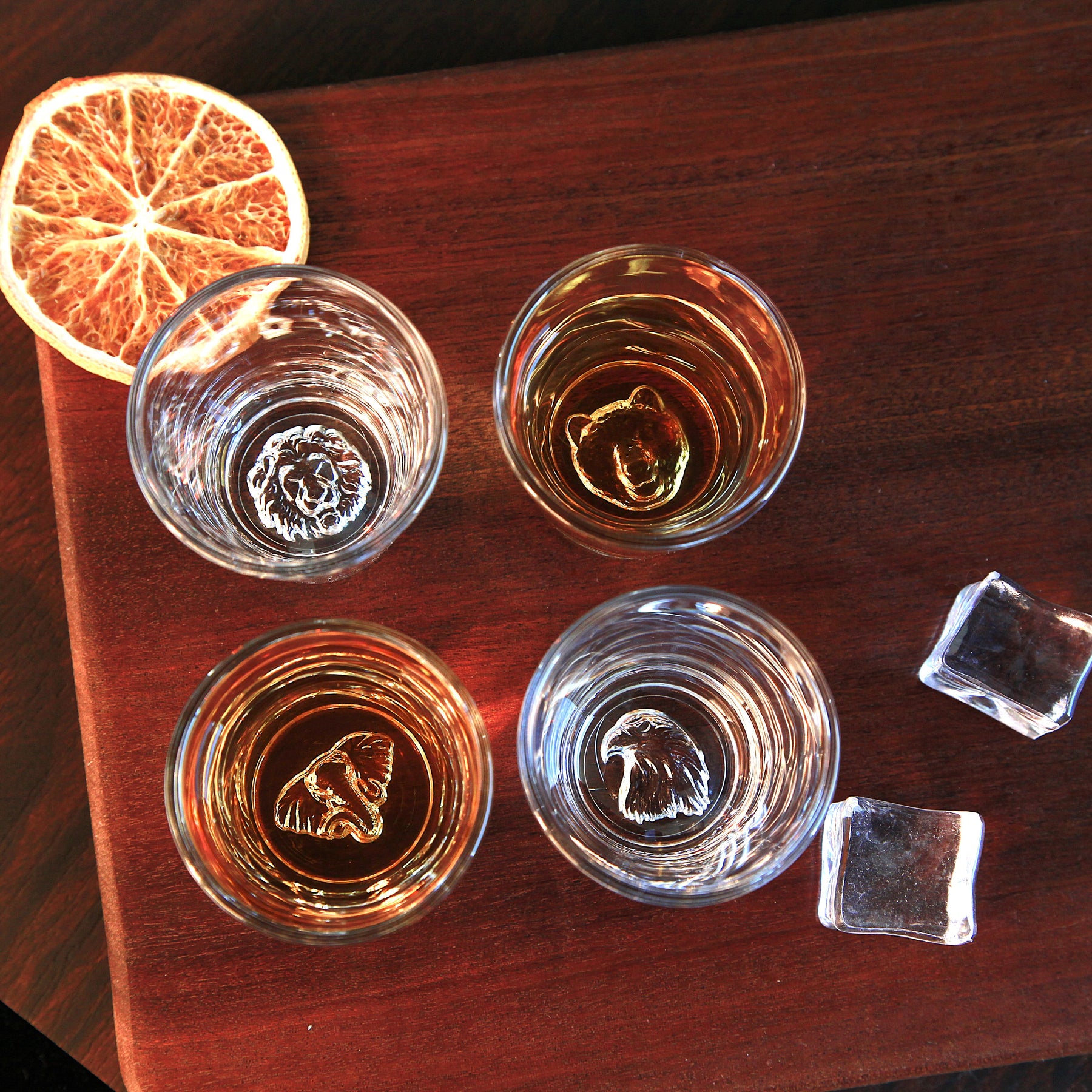 Homestia 10OZ Whiskey Glasses Set of 4, Heavy Bottom with Carved Animal Patterns