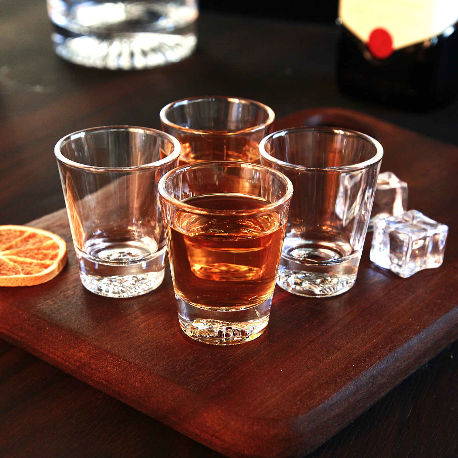 Crafted from heavy-duty, crystal-clear glass, these shot glasses showcase hand-carved patterns for a touch of elegance. The weighted base ensures stability during spirited gatherings, while the thick walls resist chipping and enhance durability.
