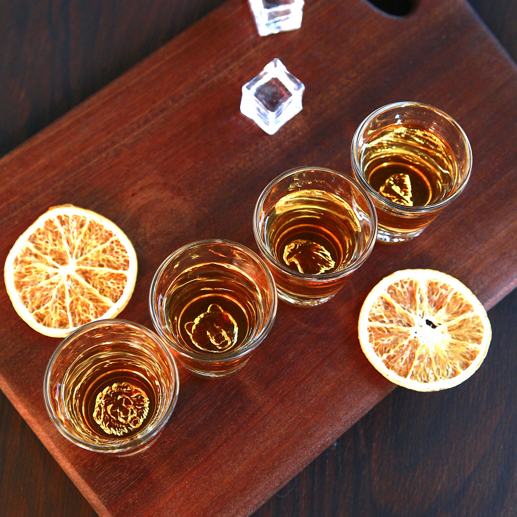 Homestia 1.8OZ (50ml) Shot Glasses Set of 4, Heavy Bottom with Carved Animal Patterns