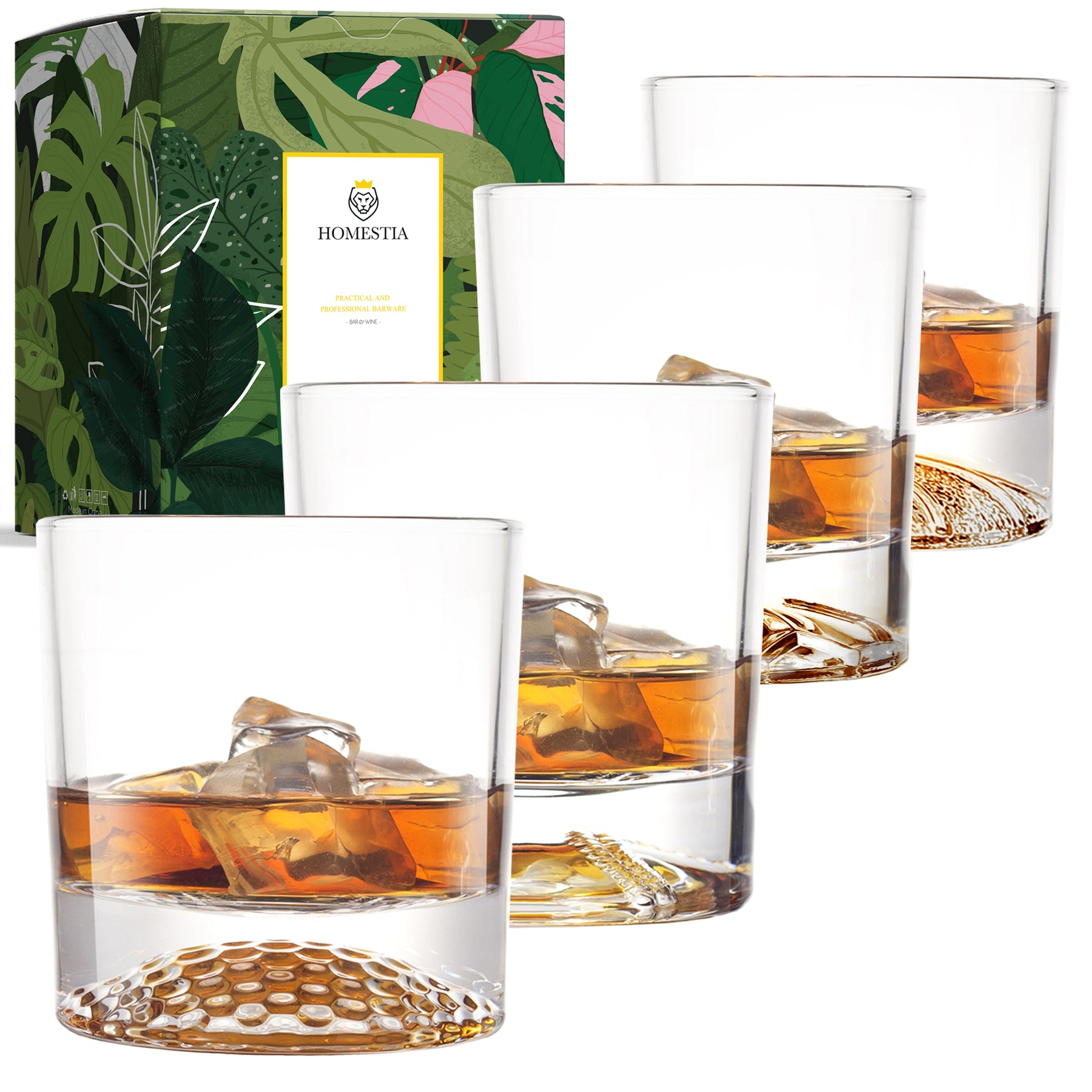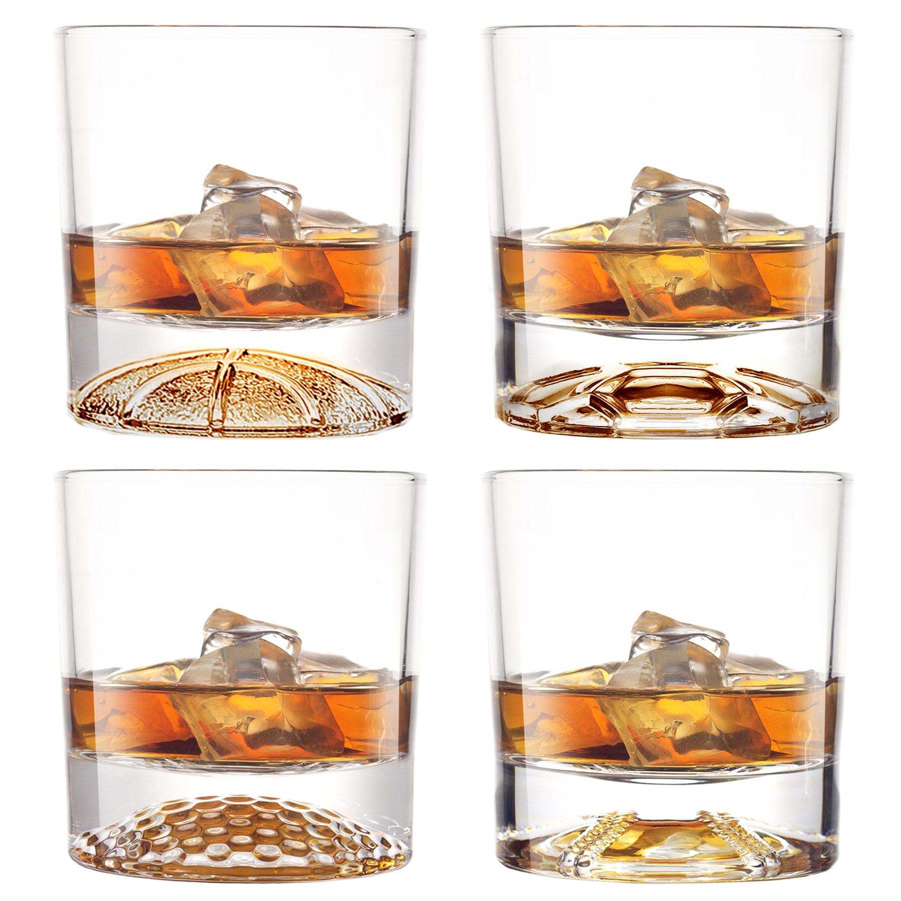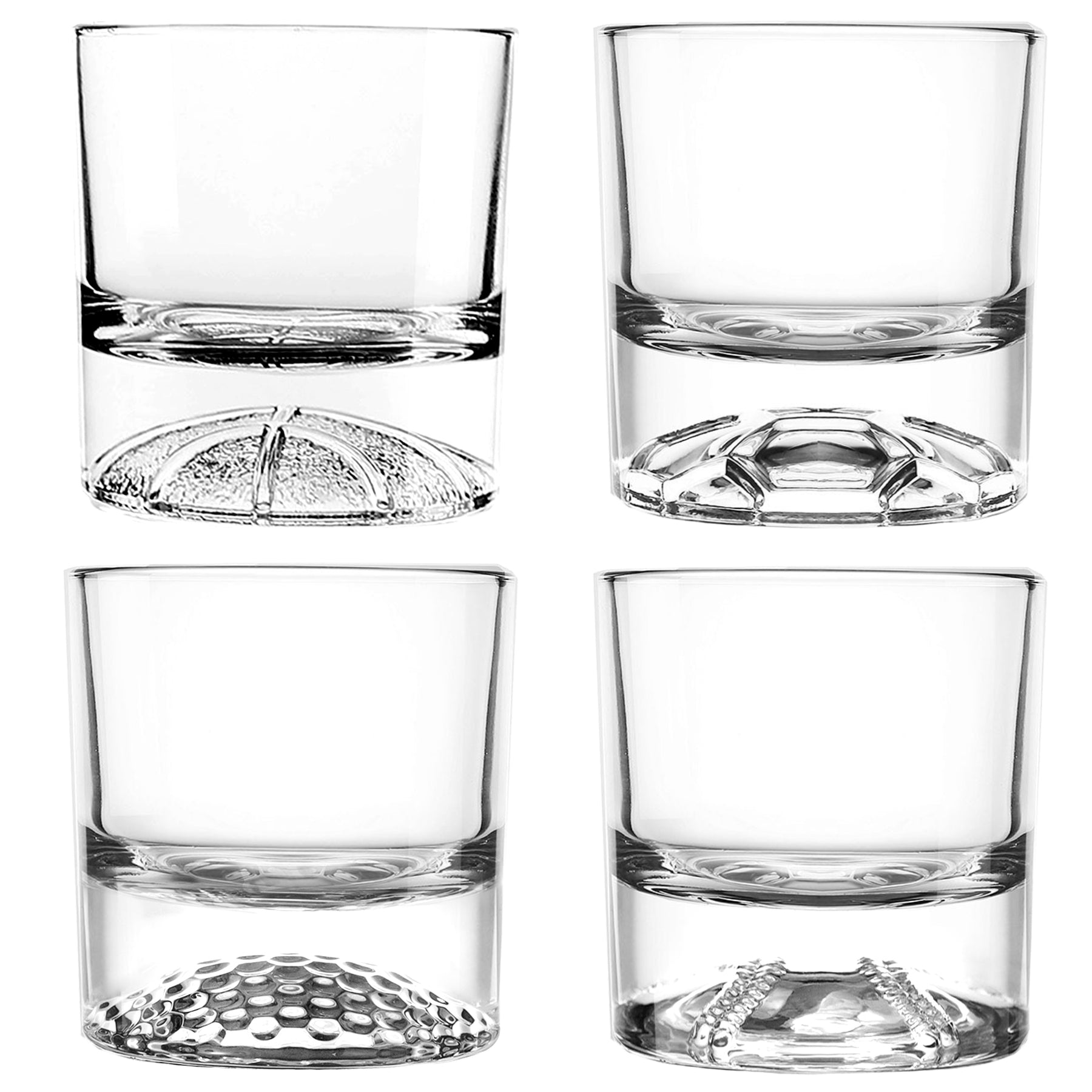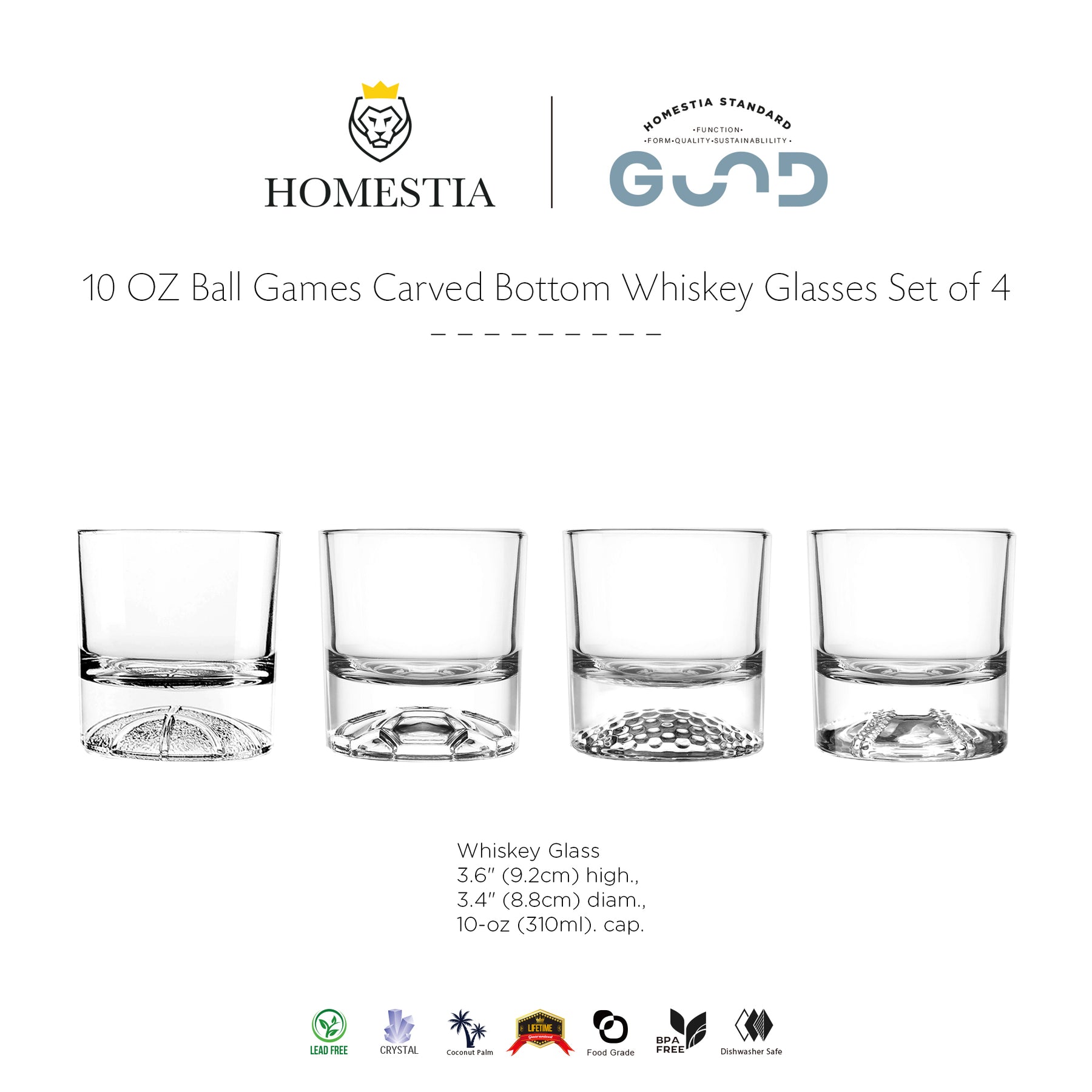 Homestia 10OZ Whiskey Glasses Set of 4, Heavy Bottom with Carved Ball Game Patterns