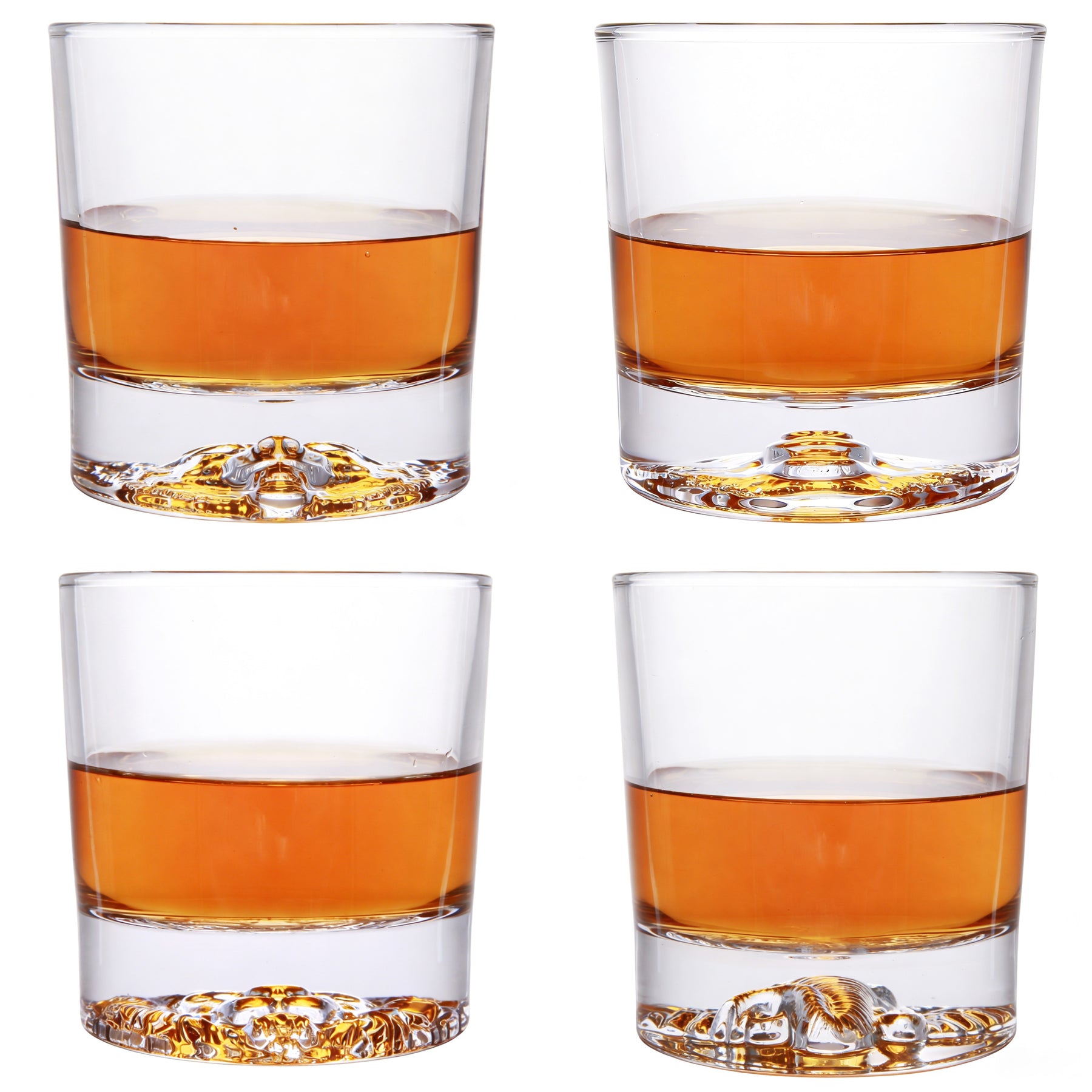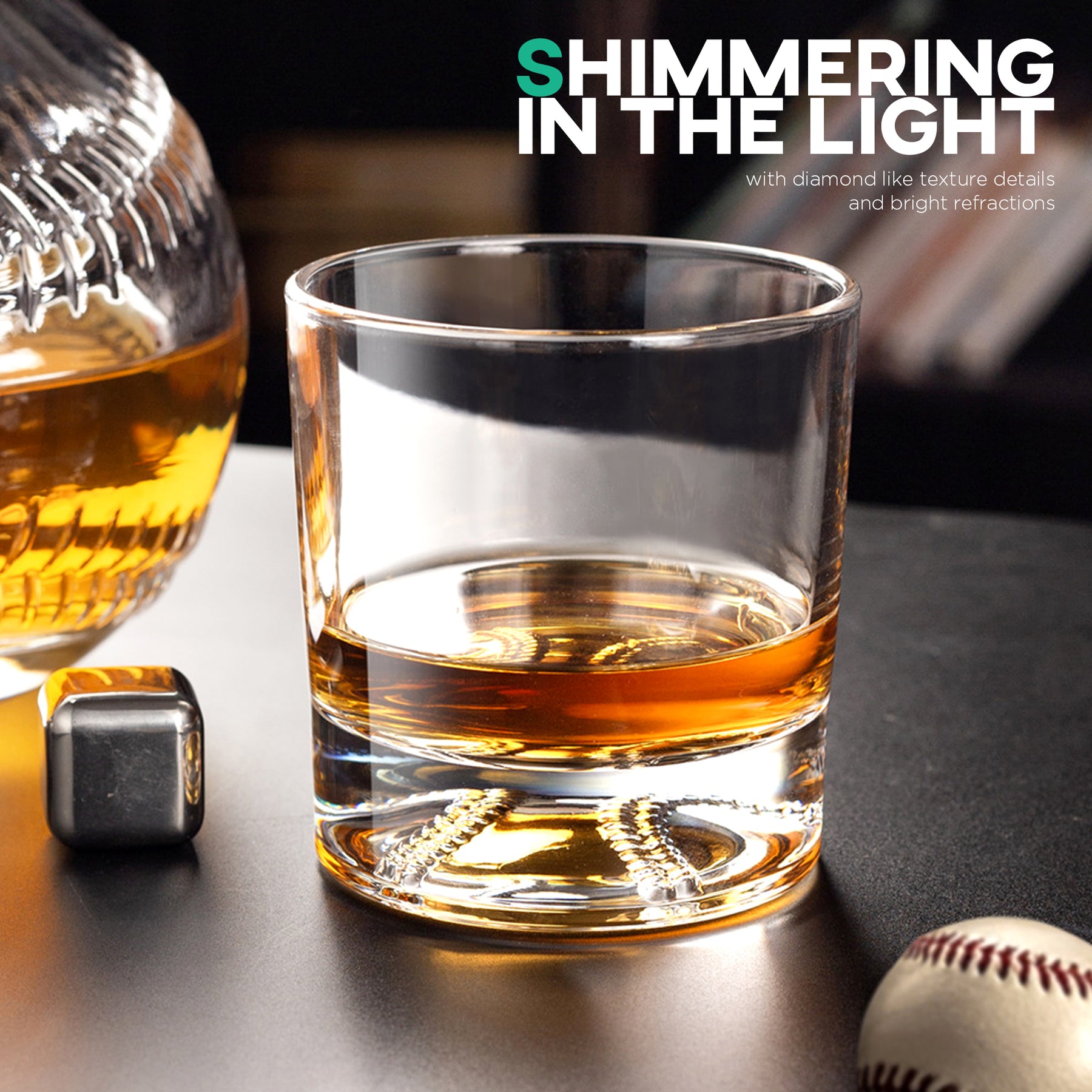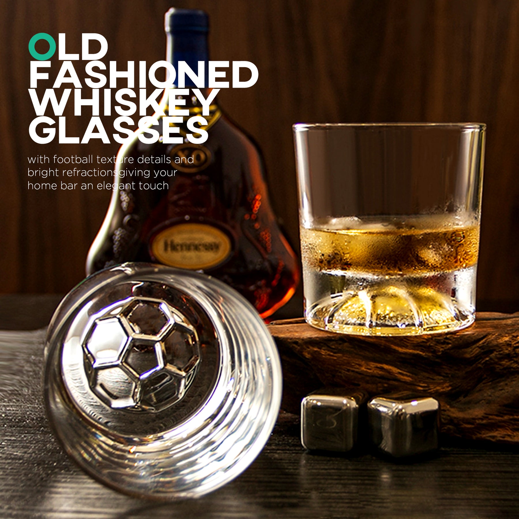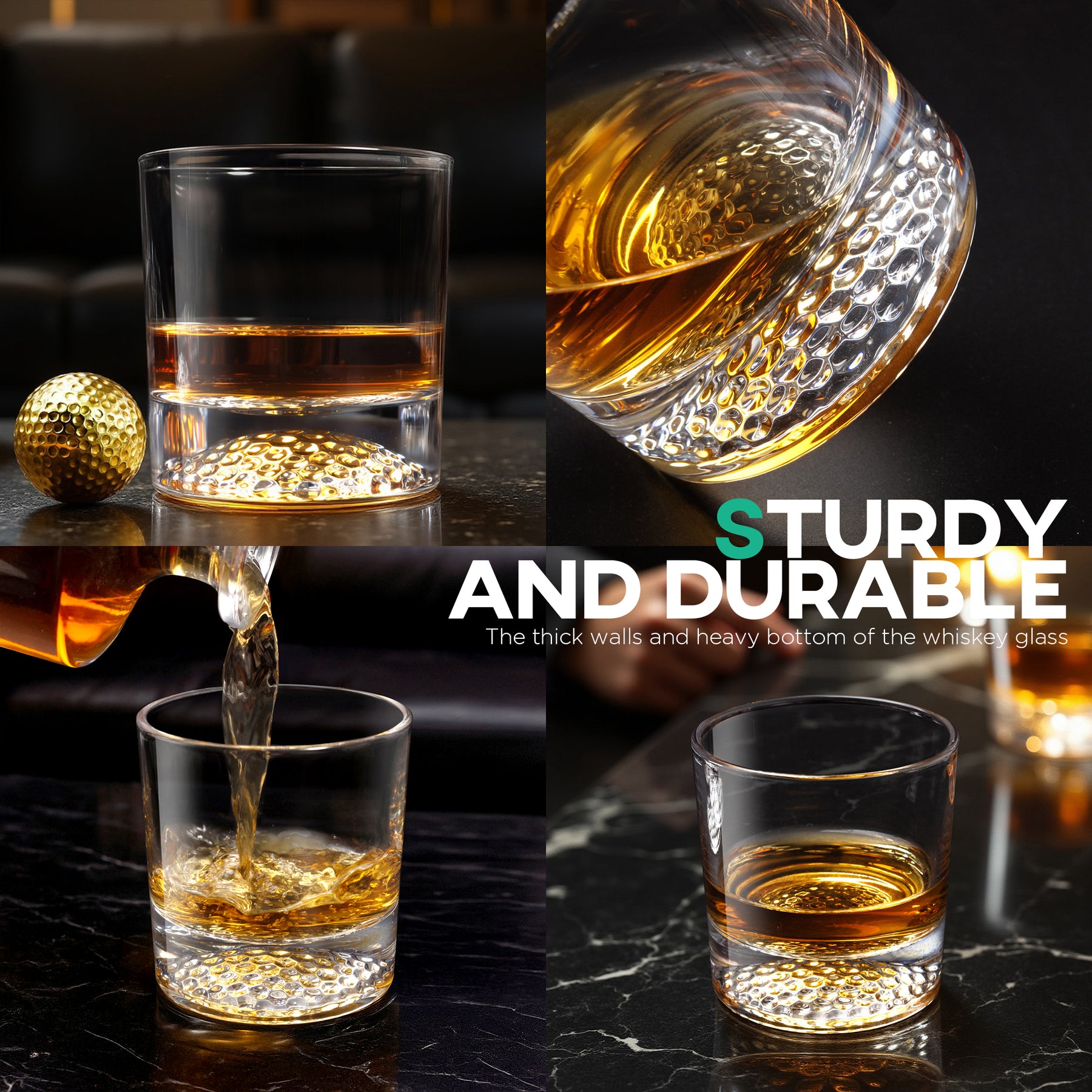 Homestia 10OZ Whiskey Glasses Set of 4, Heavy Bottom with Carved Ball Game Patterns