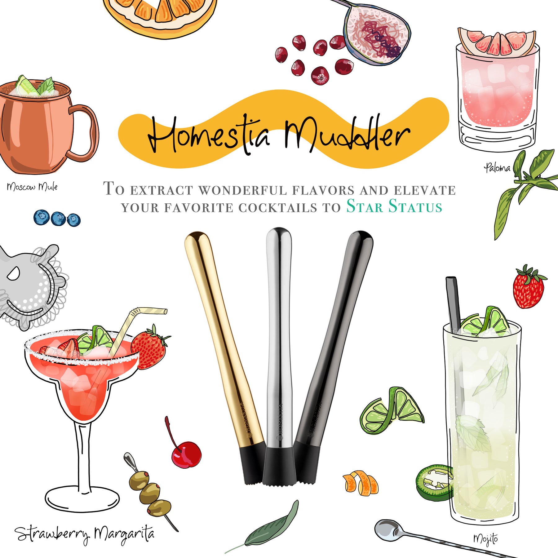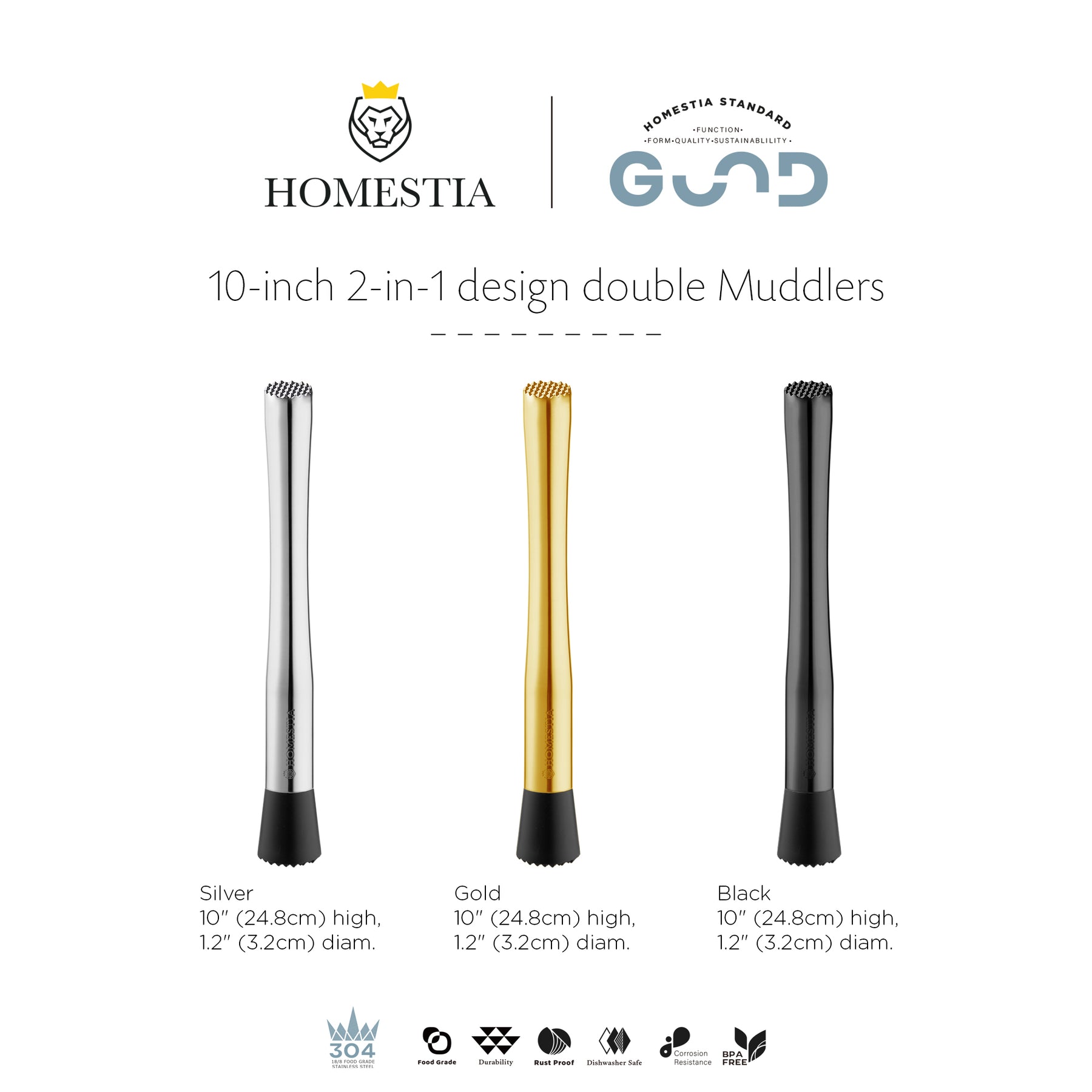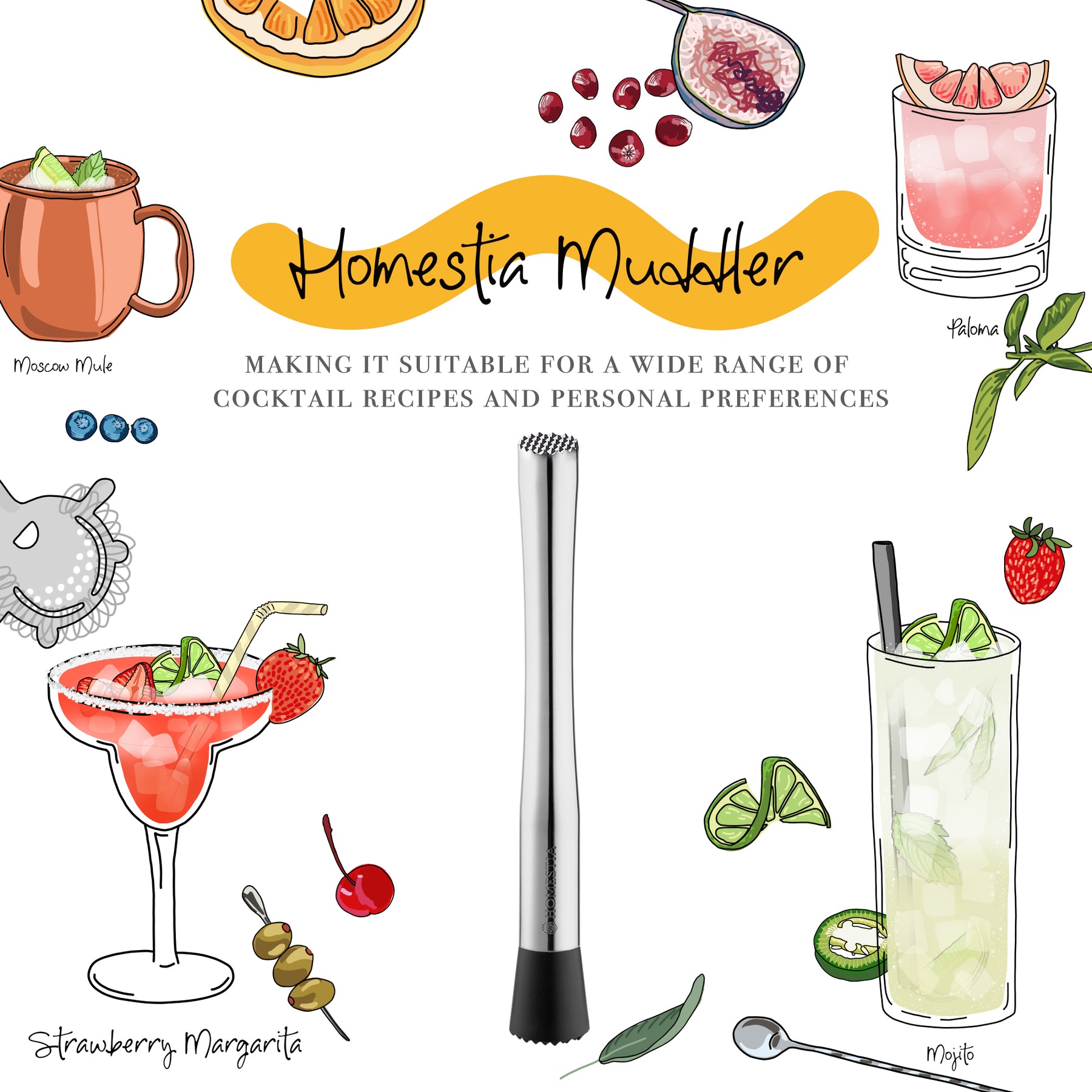 Homestia Stainless Steel Cocktail Muddler, Double-Headed