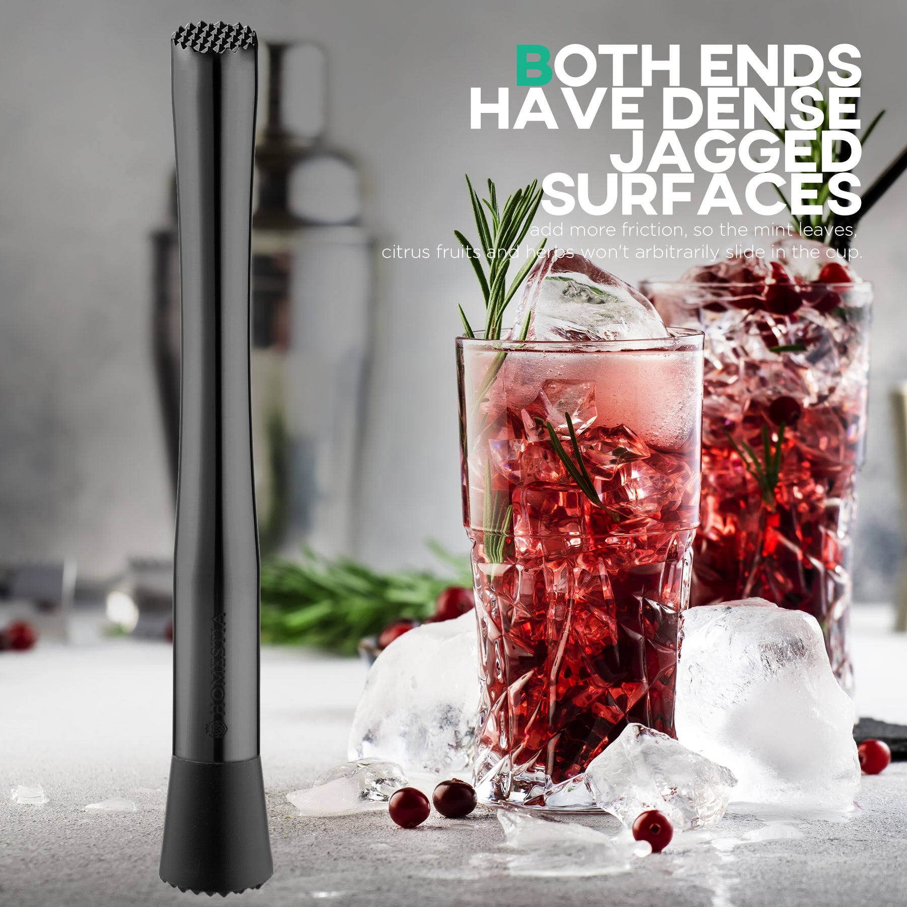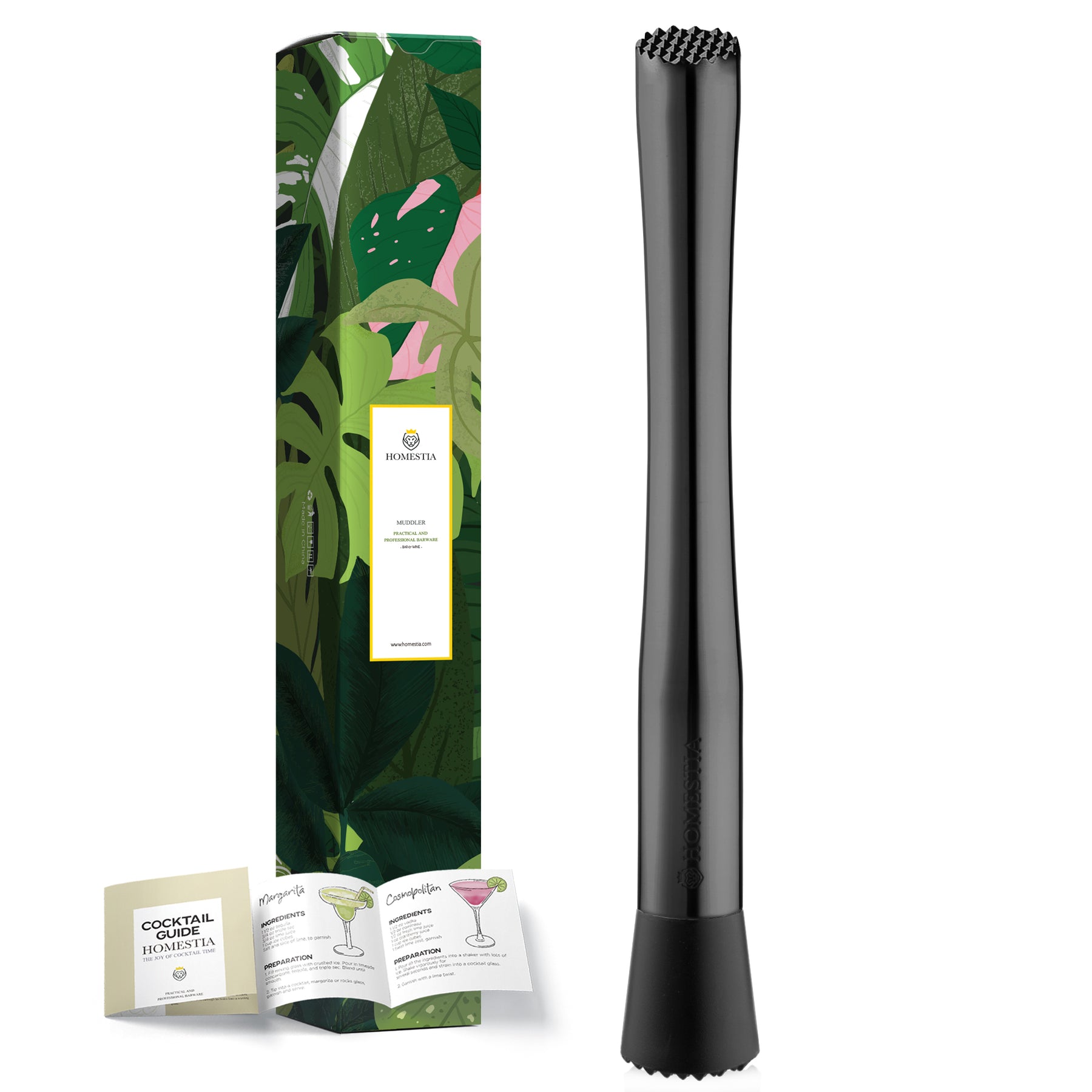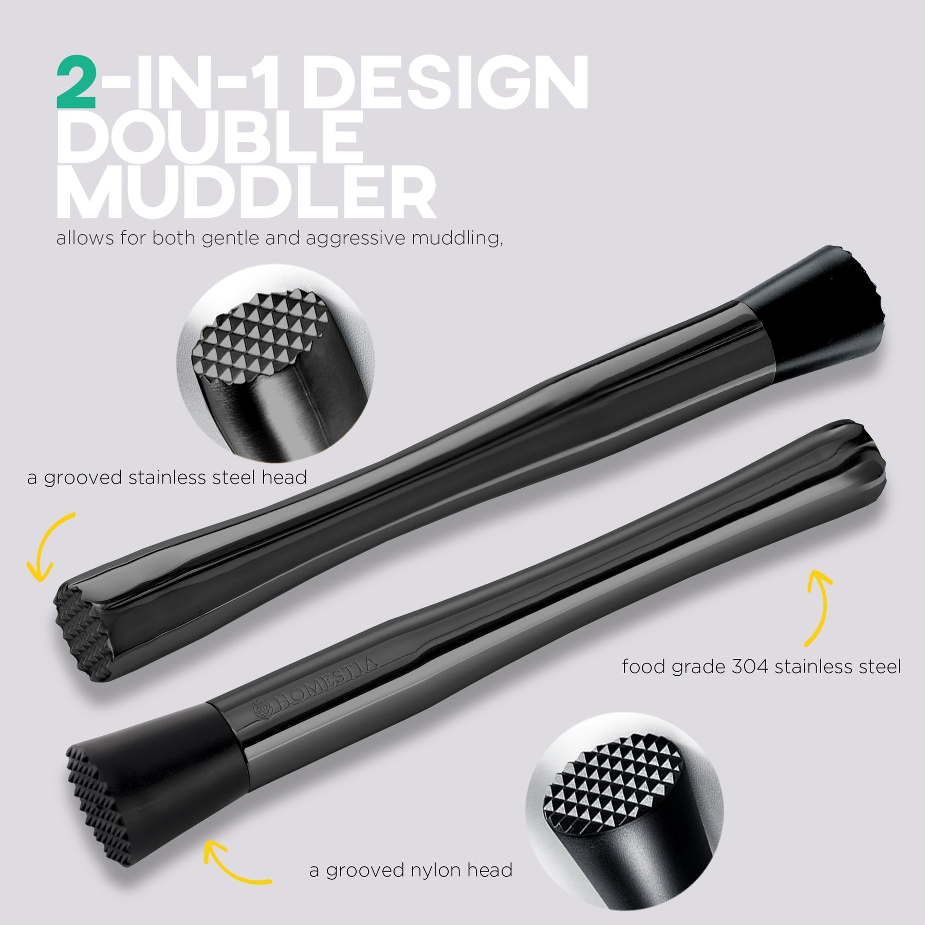 Homestia Stainless Steel Black Cocktail Muddler, Double-Headed