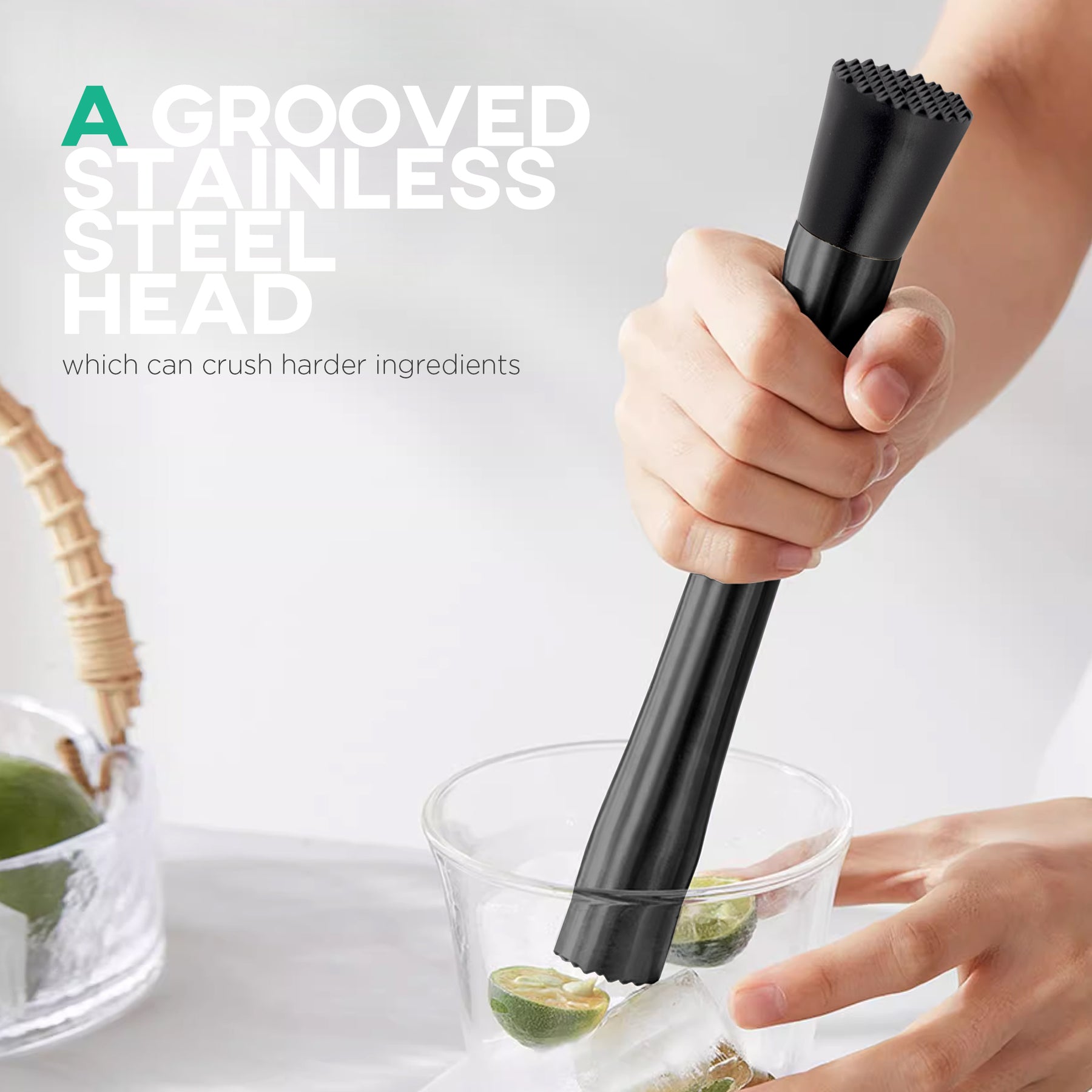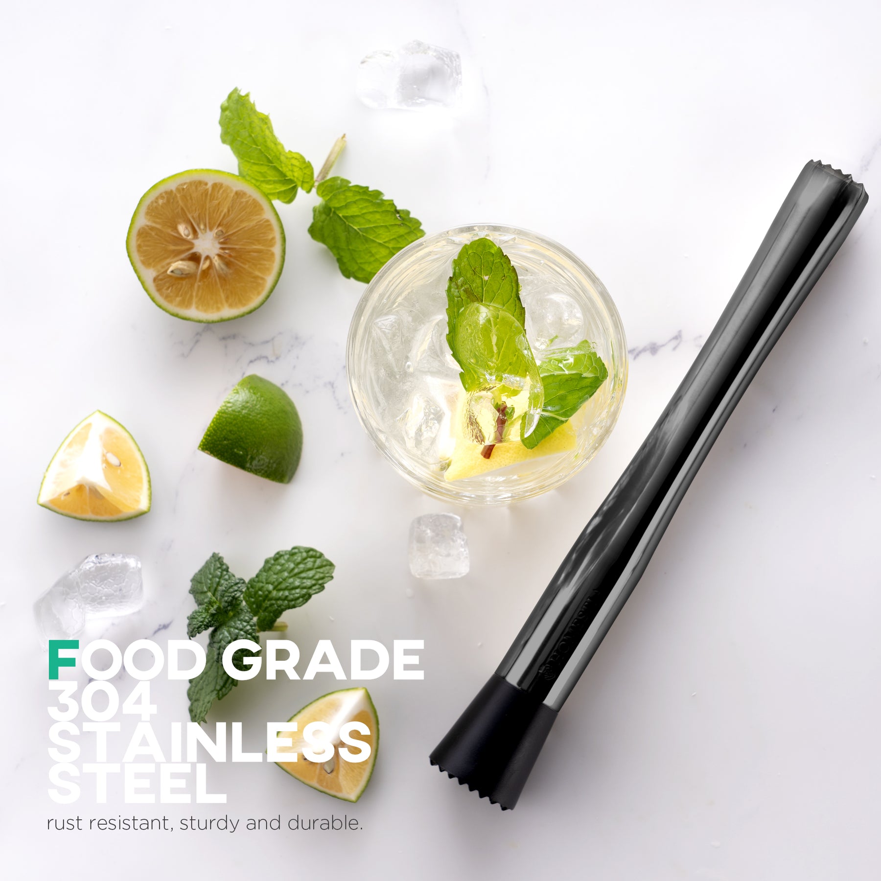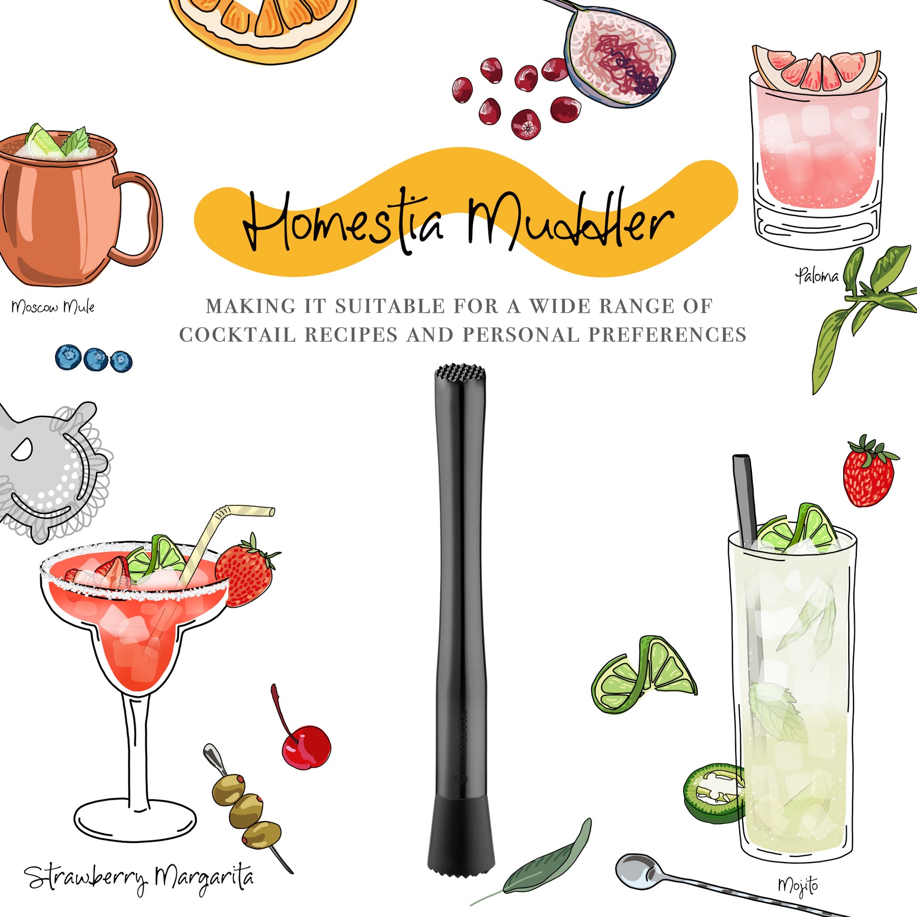 Homestia Stainless Steel Black Cocktail Muddler, Double-Headed