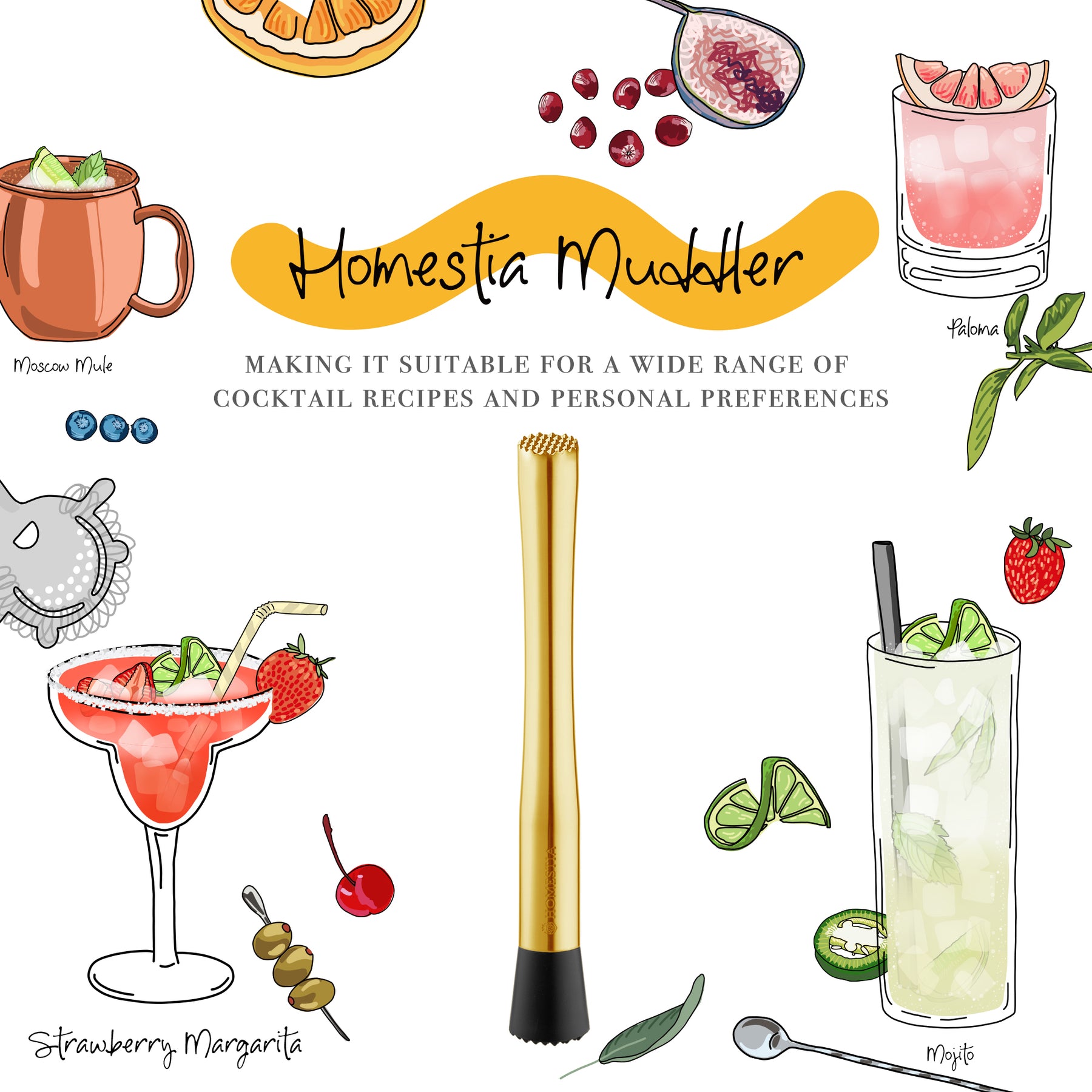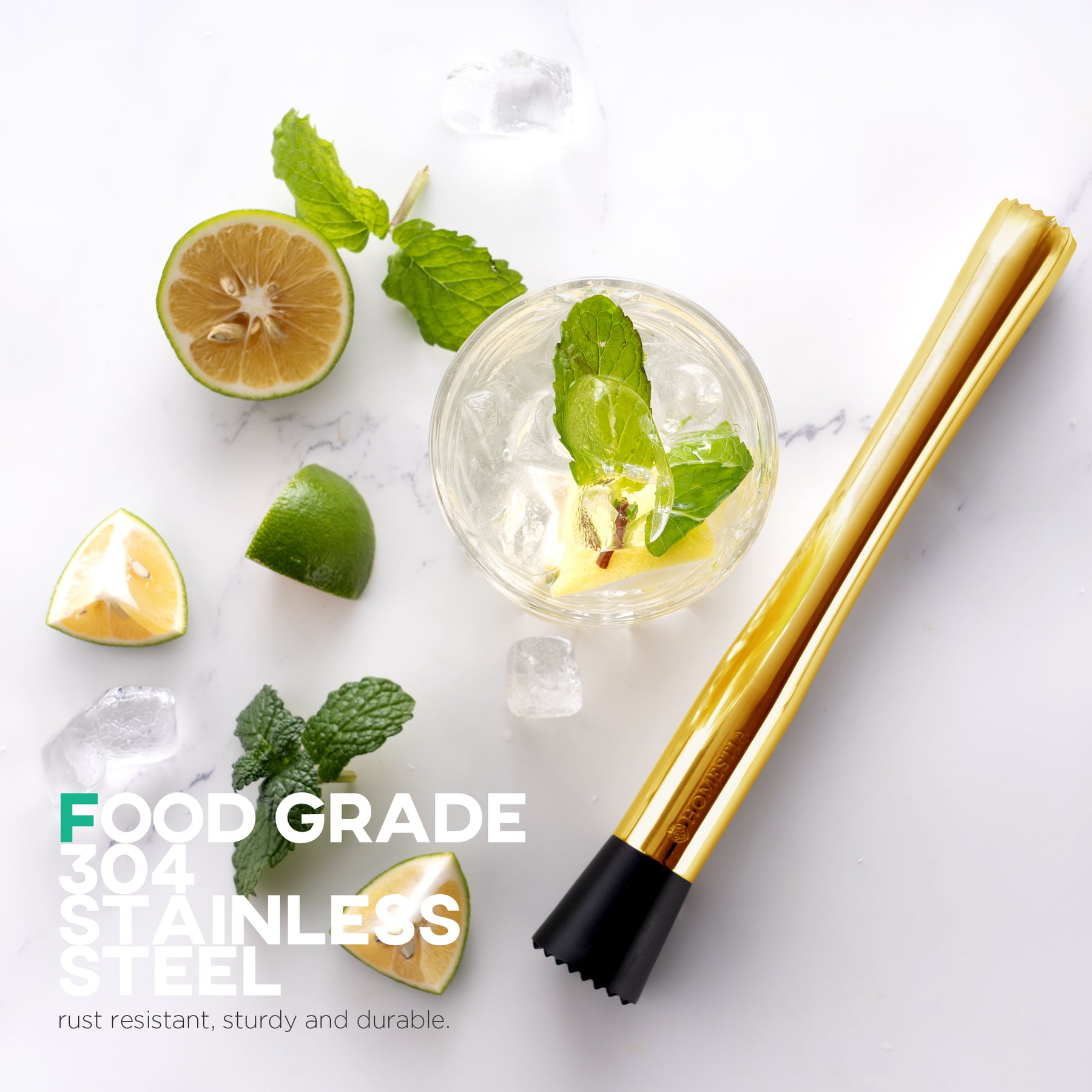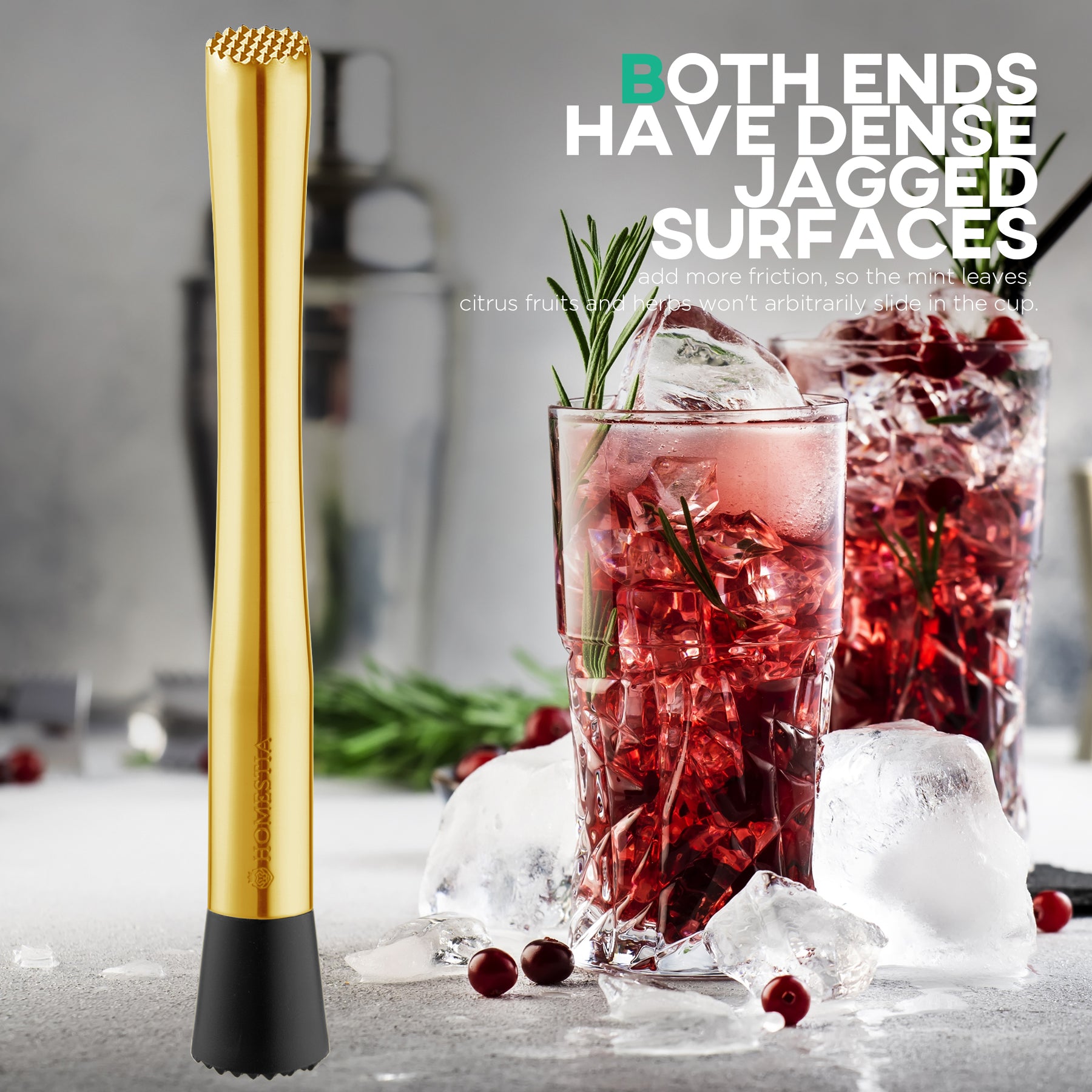 Homestia Stainless Steel Gold Cocktail Muddler, Double-Headed