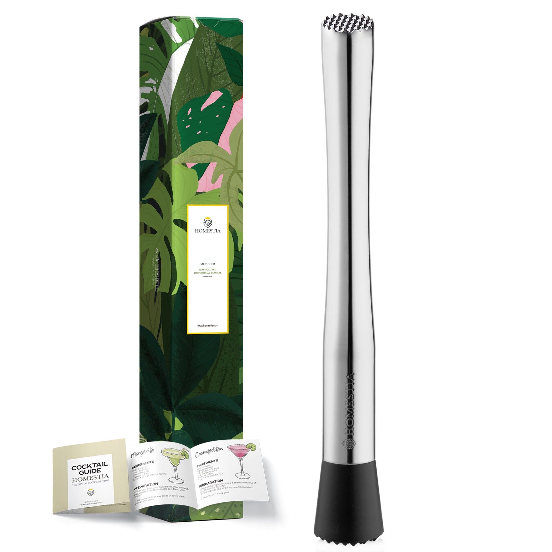 Homestia Stainless Steel Cocktail Muddler with Slim Waisted Handle