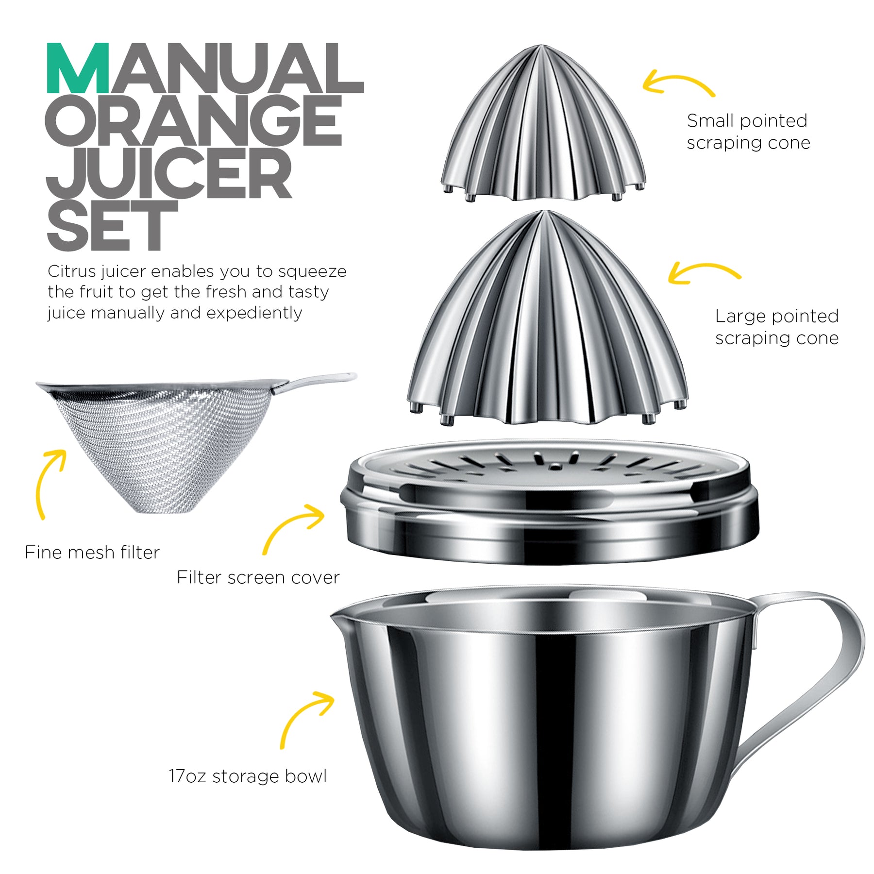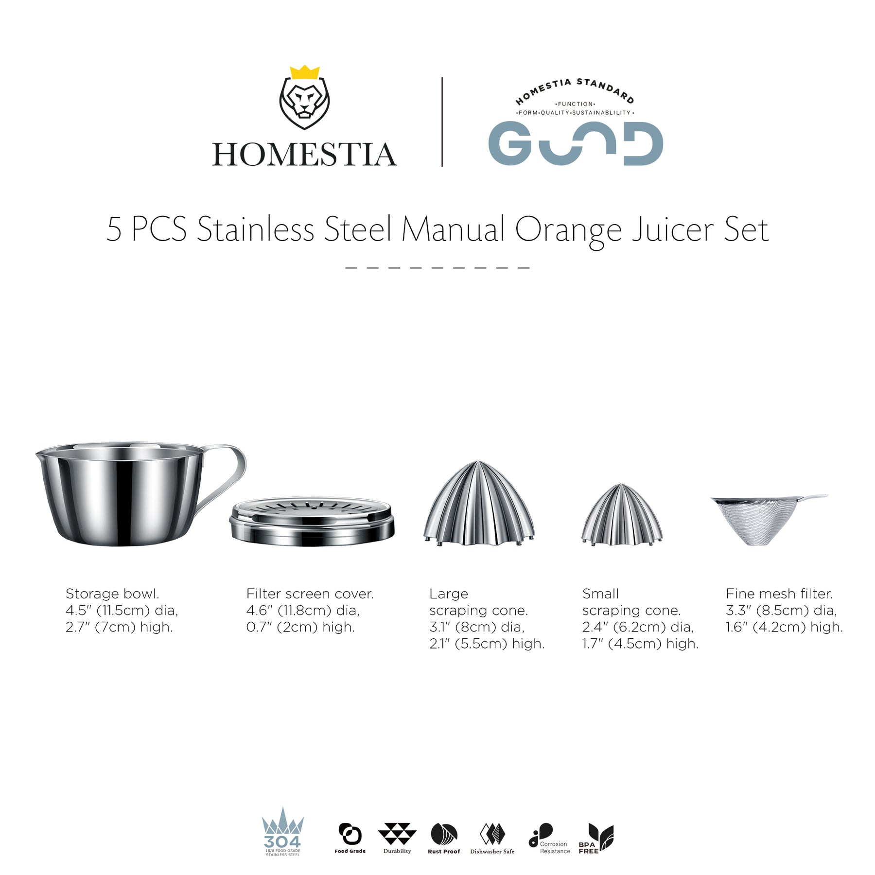 Homestia Stainless Steel Lemon Orange Juicer Set, 2 Detachable Pressing Cones