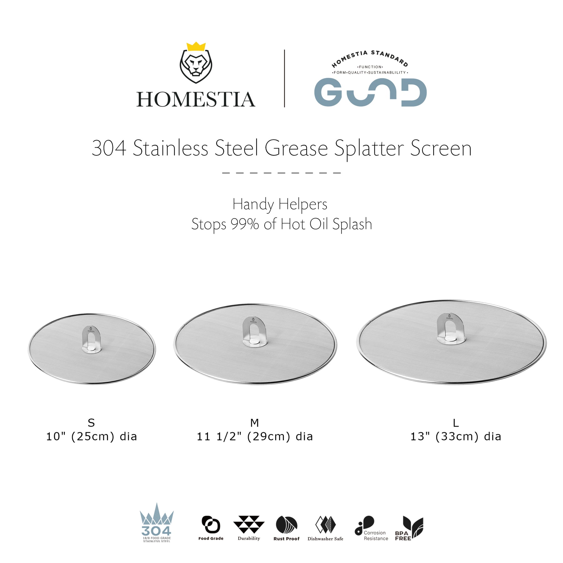 Homestia 2PCS Stainless Steel Splatter Screen Set, 10" / 13"