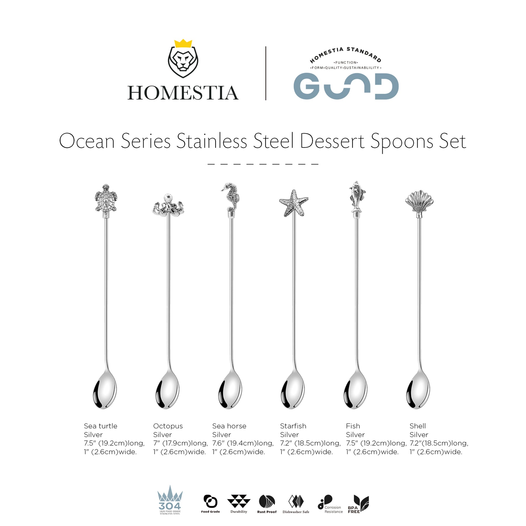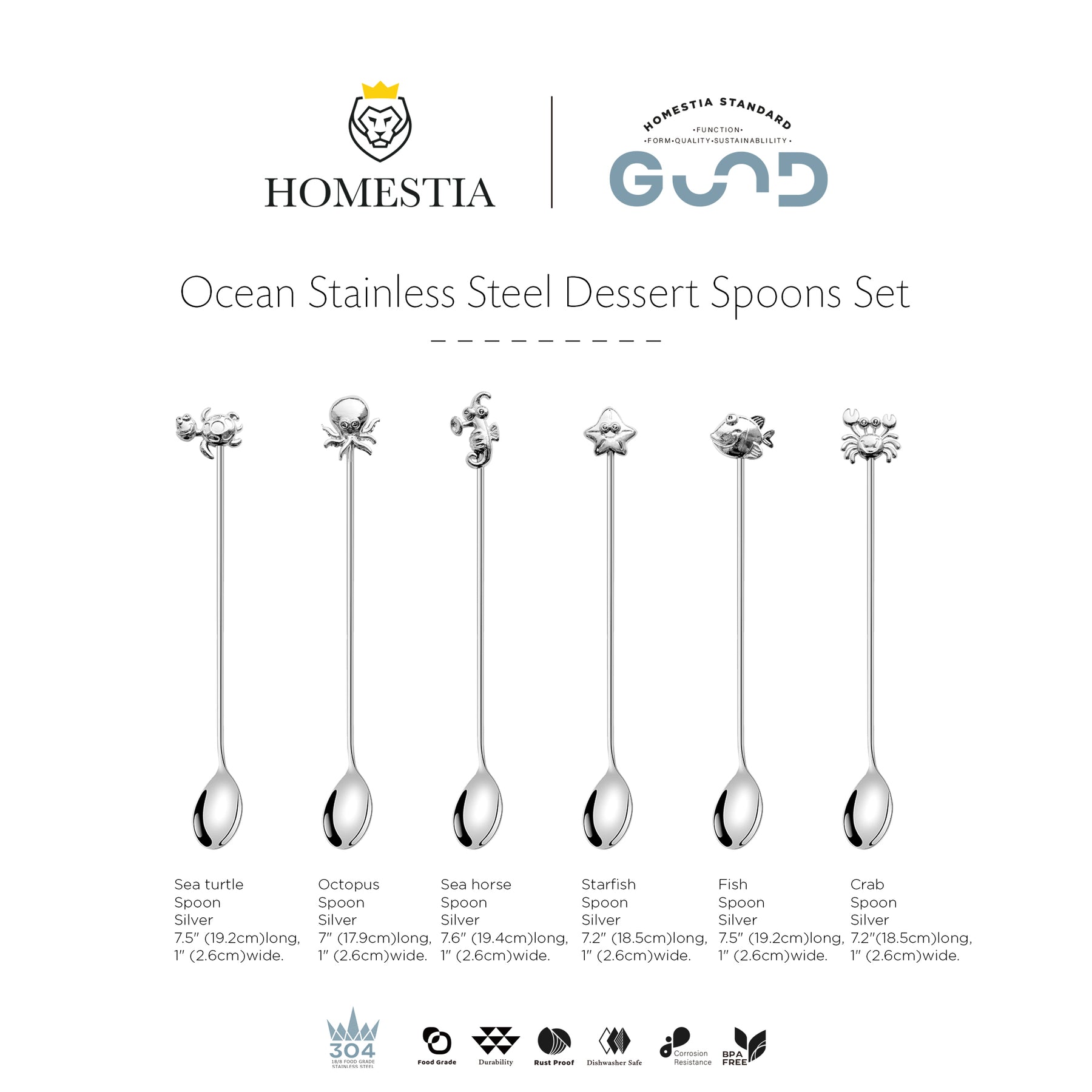 Homestia 7" Sea Animal Dessert Spoons Set of 6