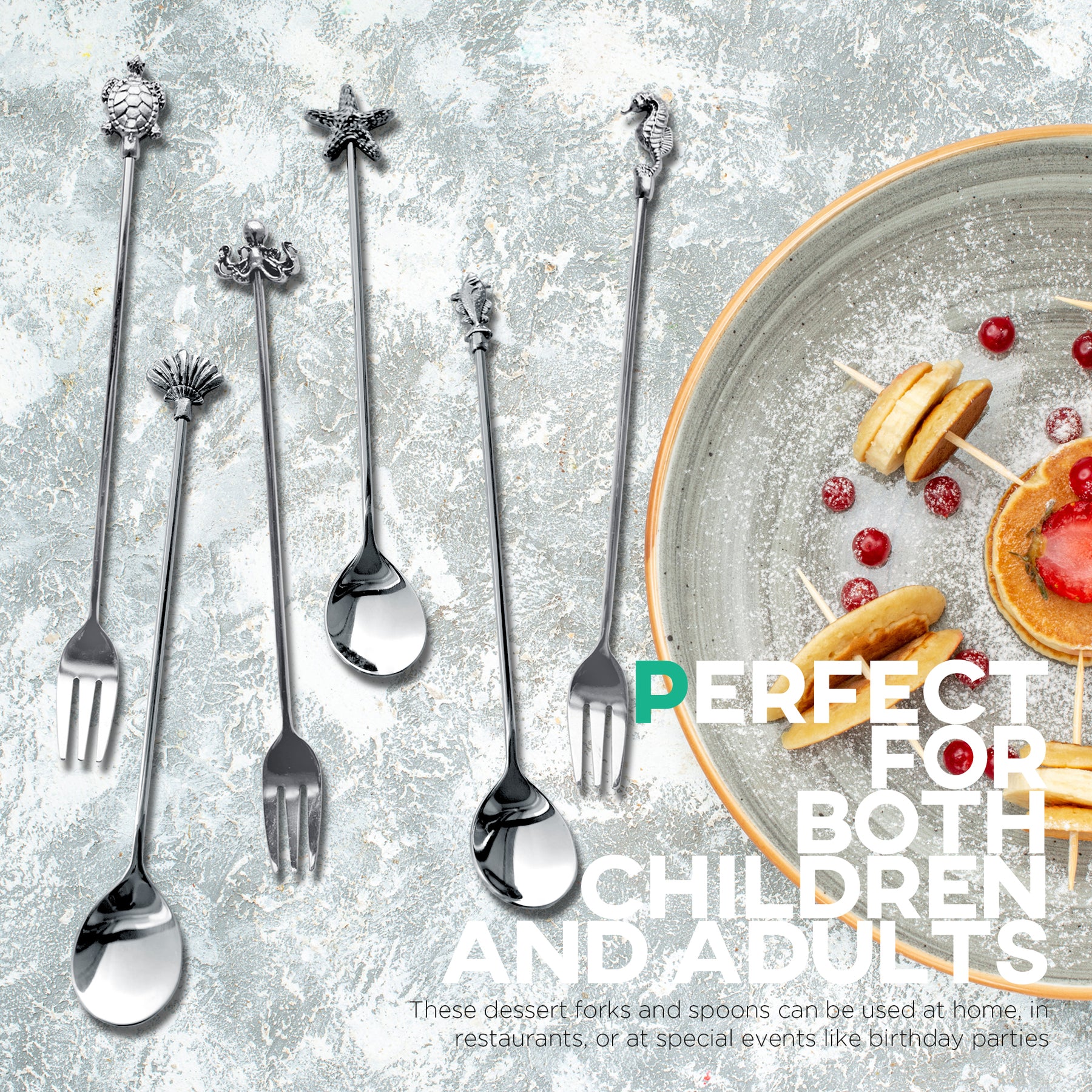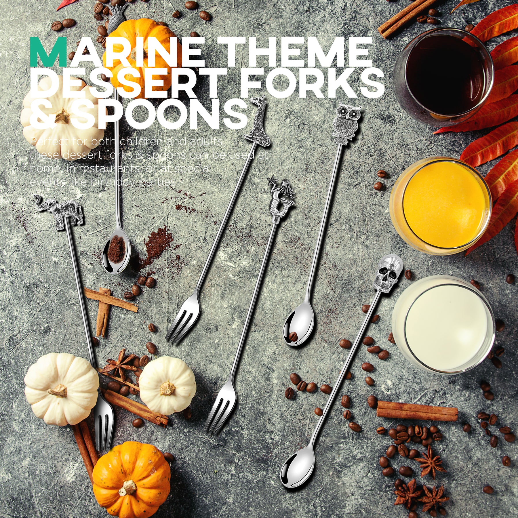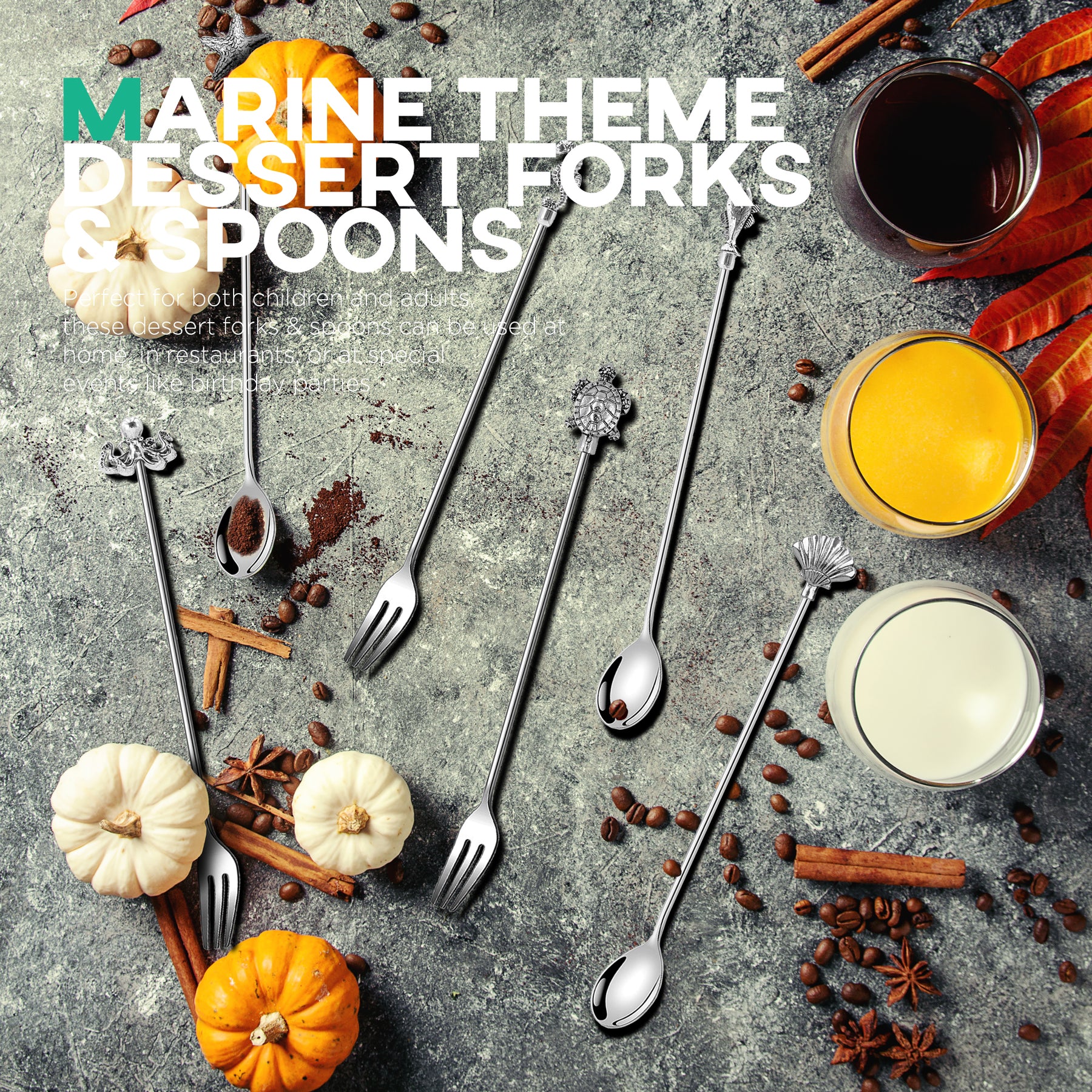 Homestia 7" Sea Animal Dessert Forks and Spoons Set of 6