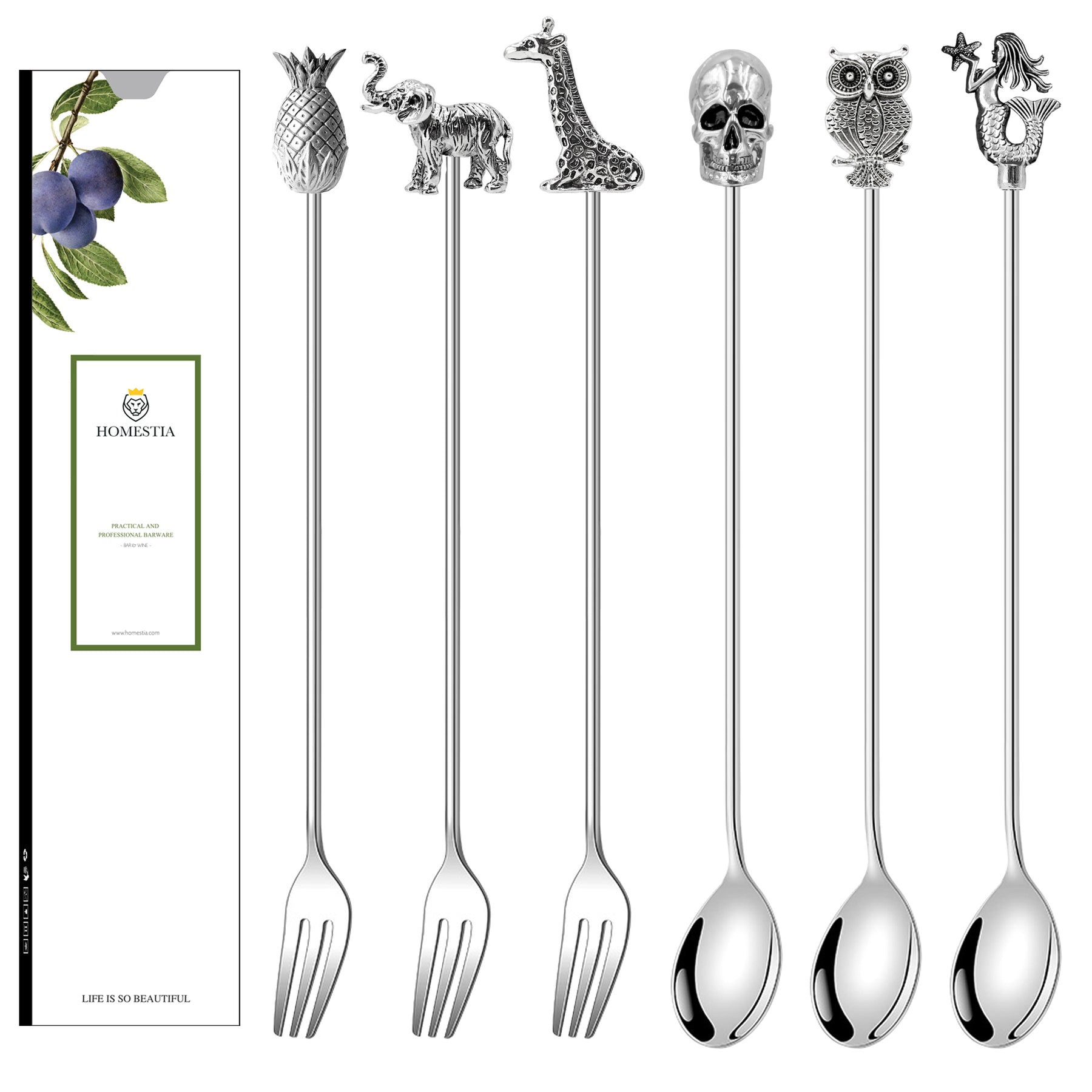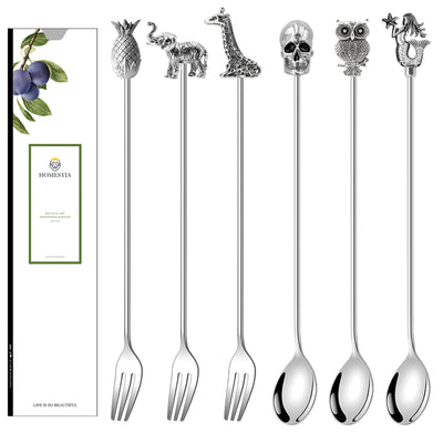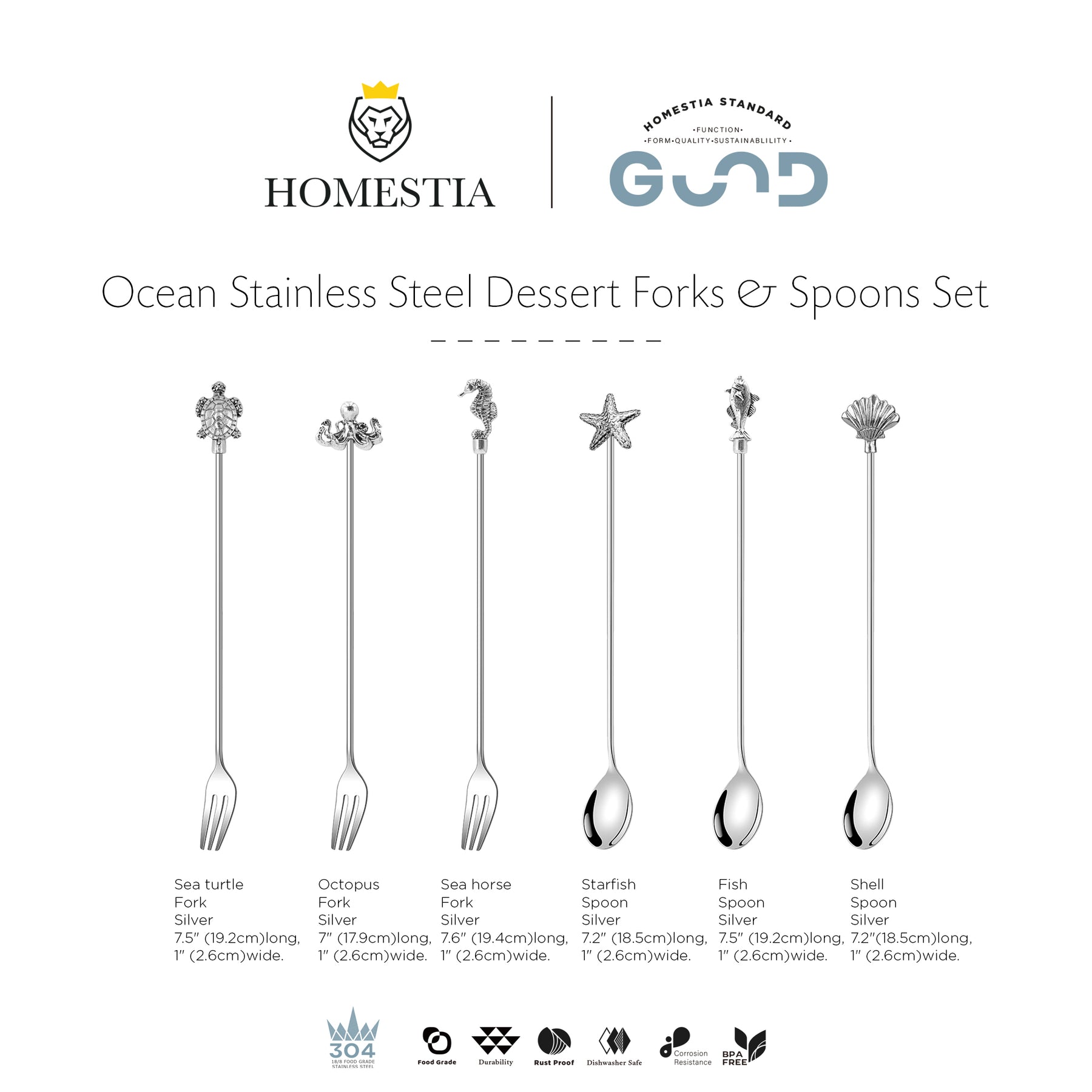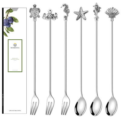 Homestia 7" Sea Animal Dessert Forks and Spoons Set of 6