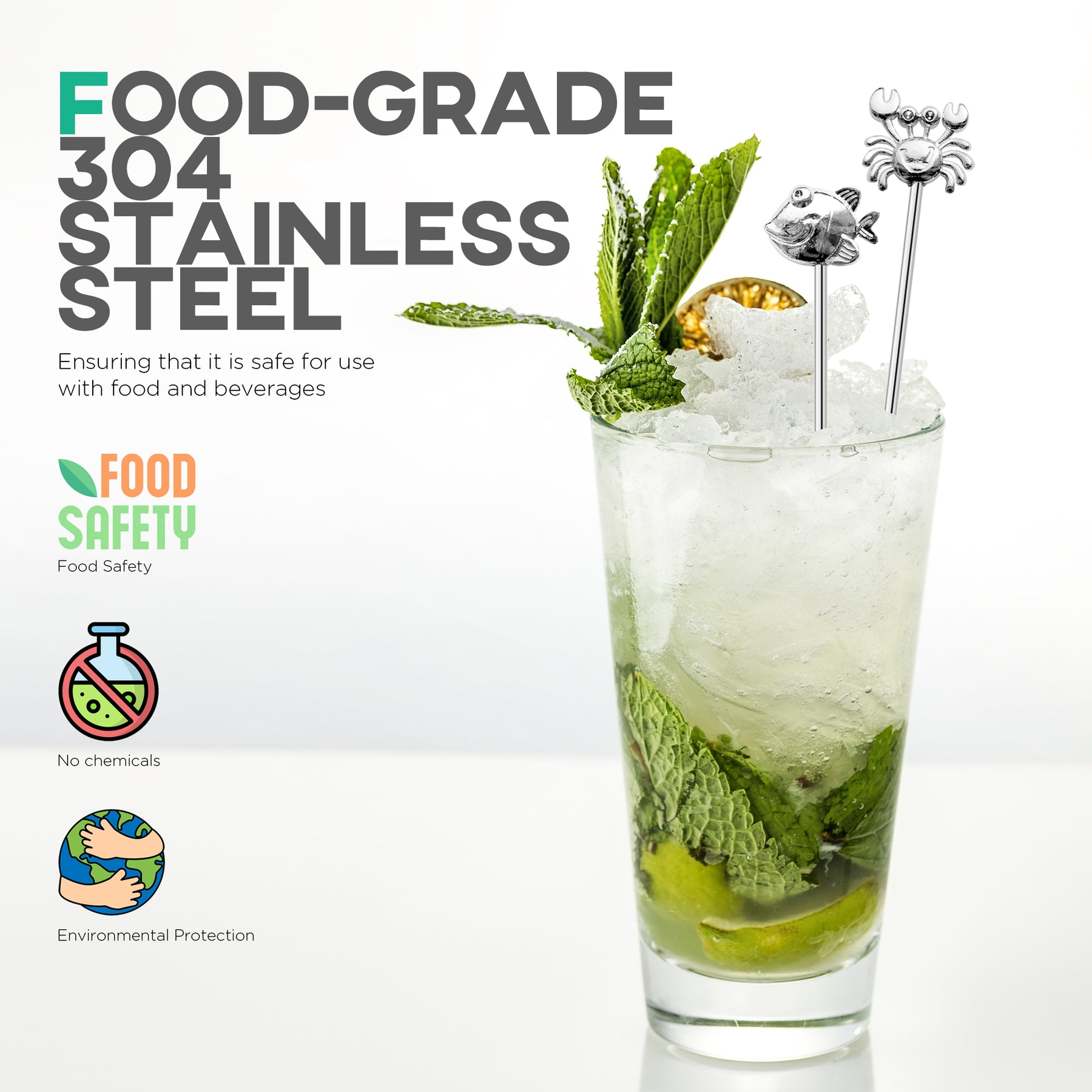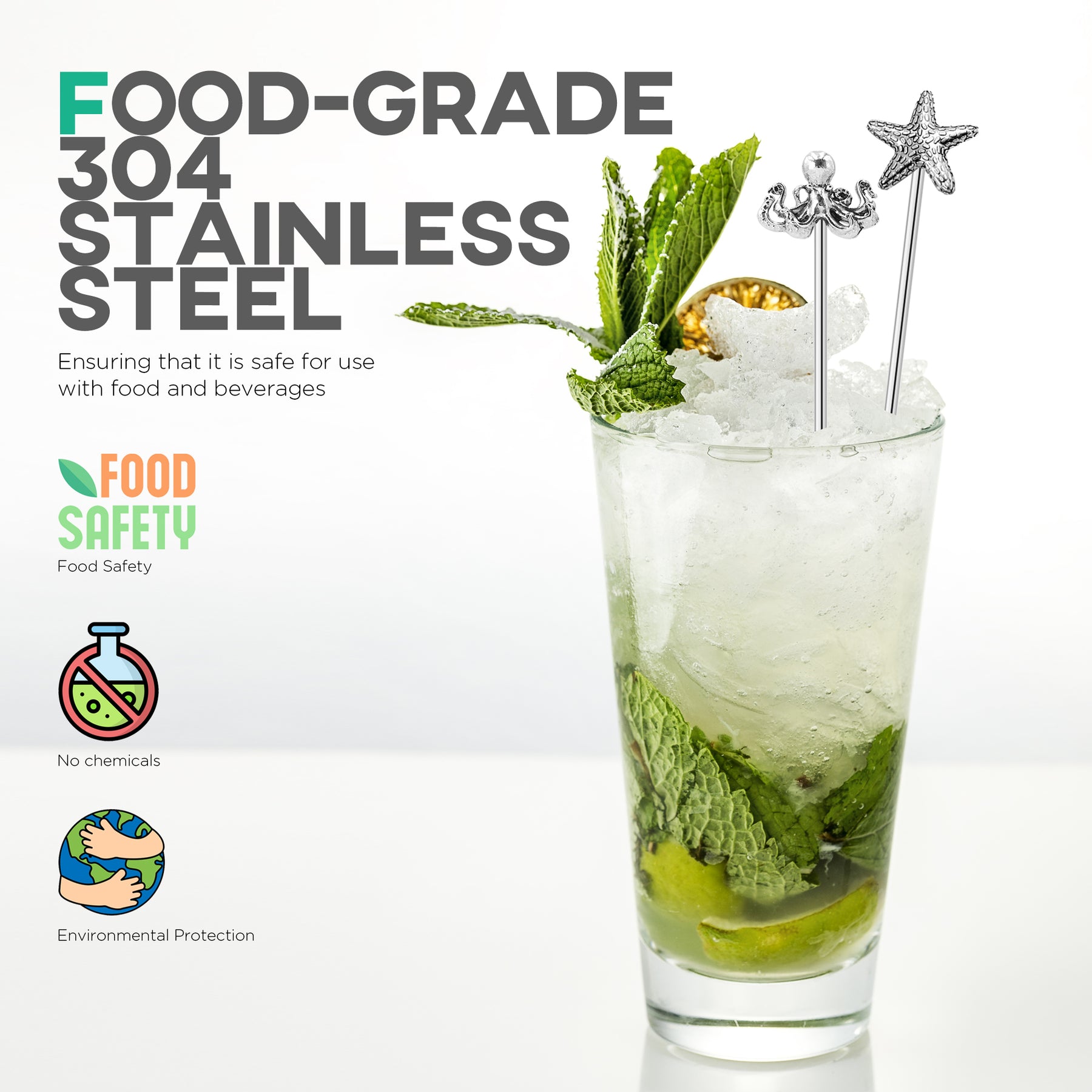 With our wide selection of stylish Swizzle Sticks series. Each pack comes with a set of 12 swizzle sticks. Ergonomic stainless-steel stick handles have mirror finish, and the wrapped bead ends makes them easy to hold.