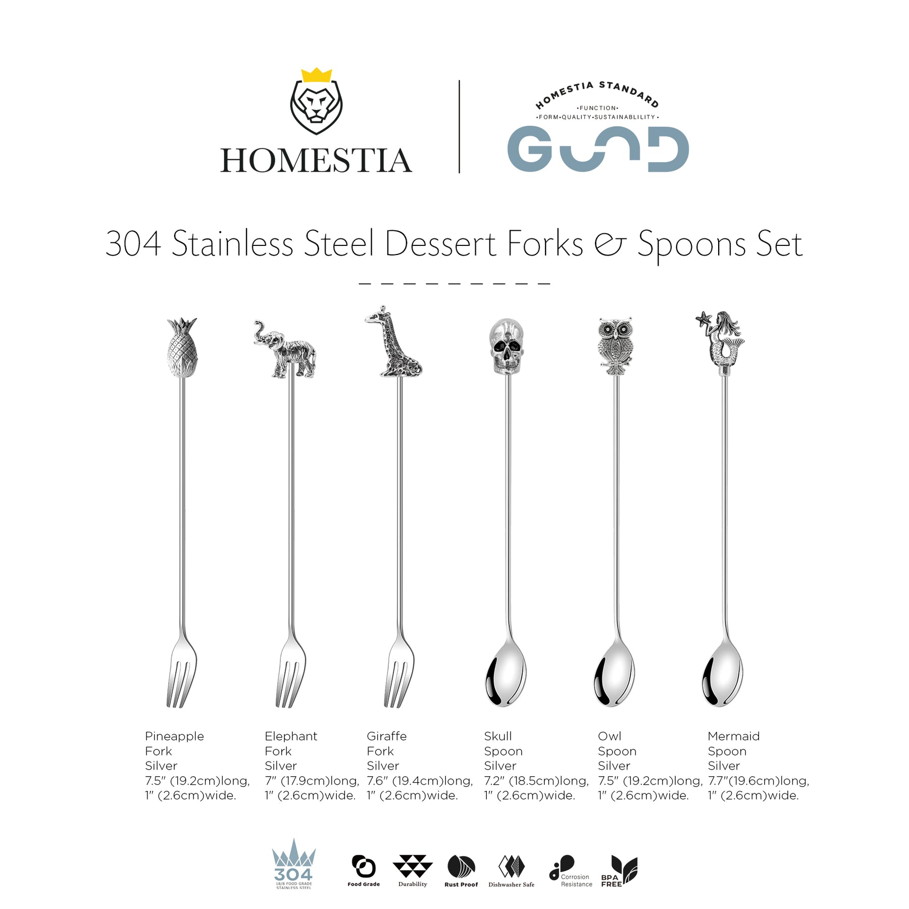 Homestia 7" Vintage Dessert Forks and Spoons Set of 6