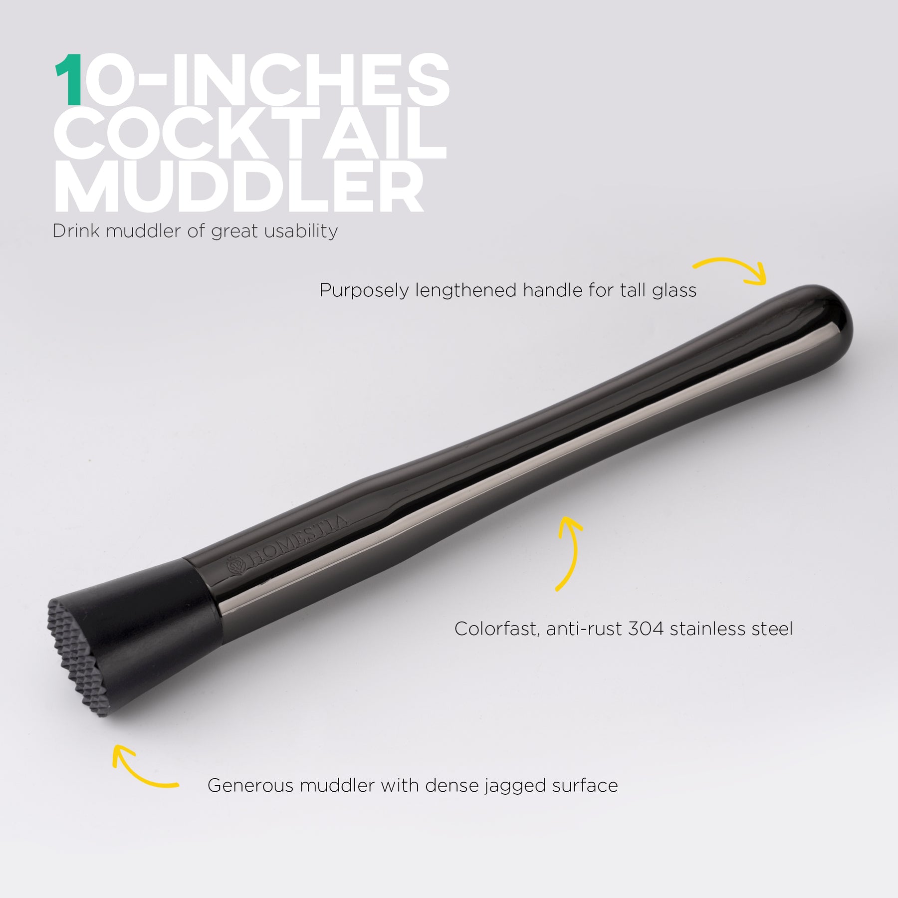 Homestia 22.6cm Stainless Steel Black Cocktail Muddler with Slim Waisted Handle