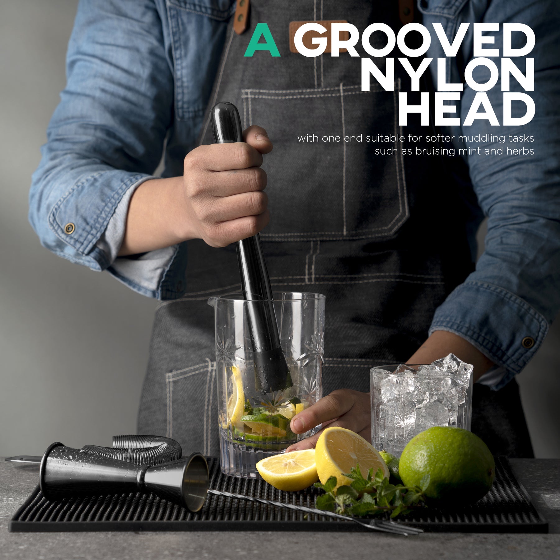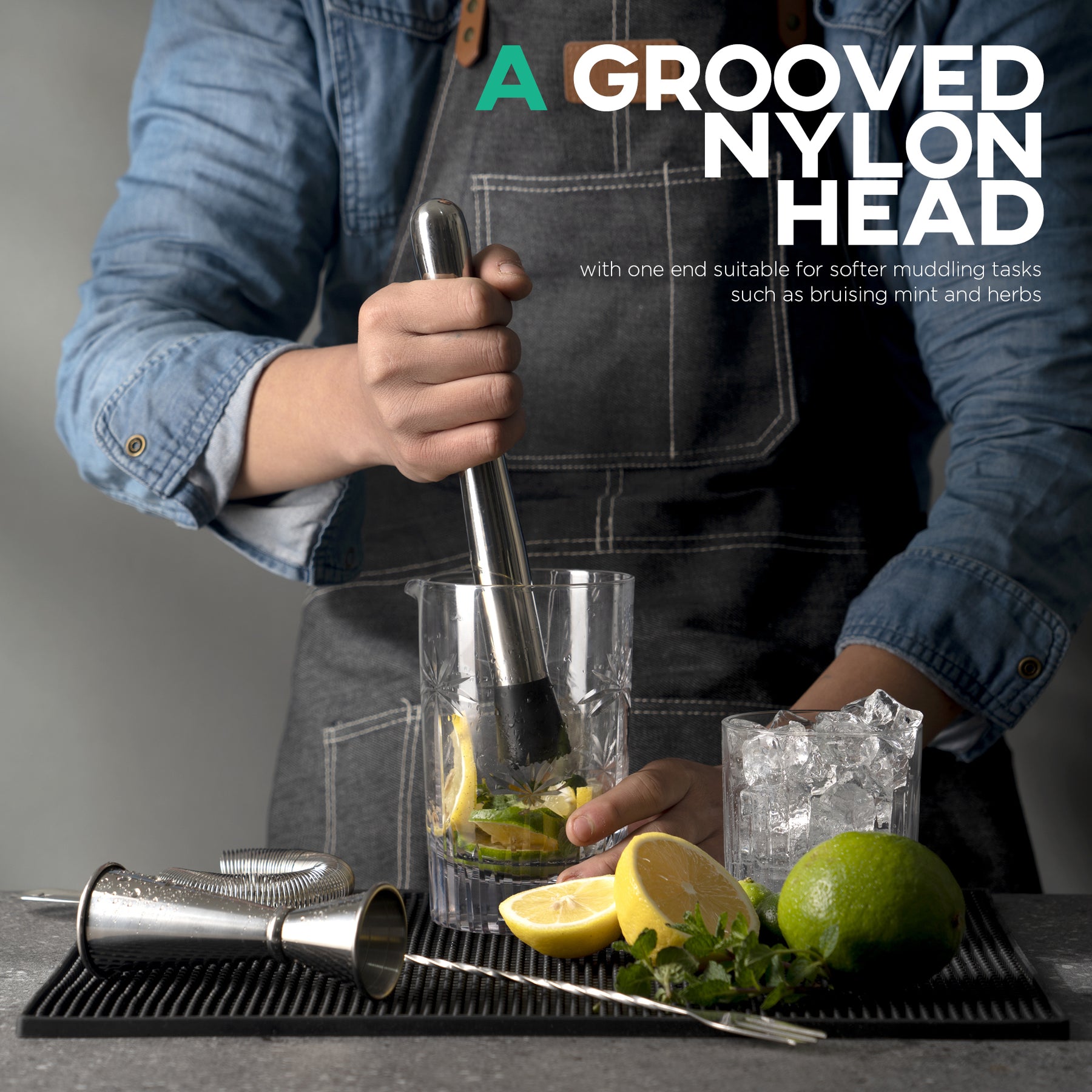 Its grooved nylon muddling head aims to release the full flavor potential of ingredients such as herbs, spices and fruit. Vital for creating a classic Mojito, this bar muddle allows you to get the most out of your mint and limes.