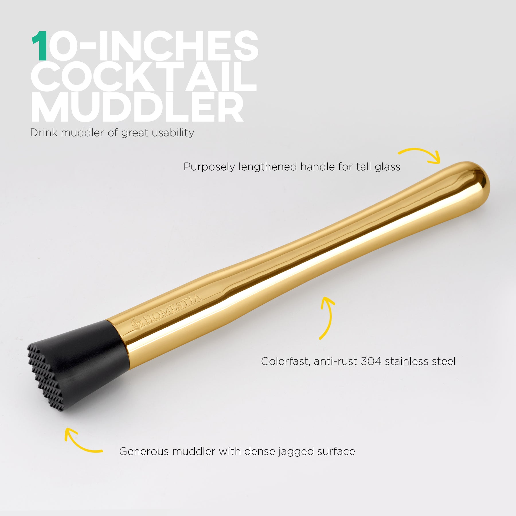 Homestia 22.6cm Stainless Steel Gold Cocktail Muddler with Slim Waisted Handle