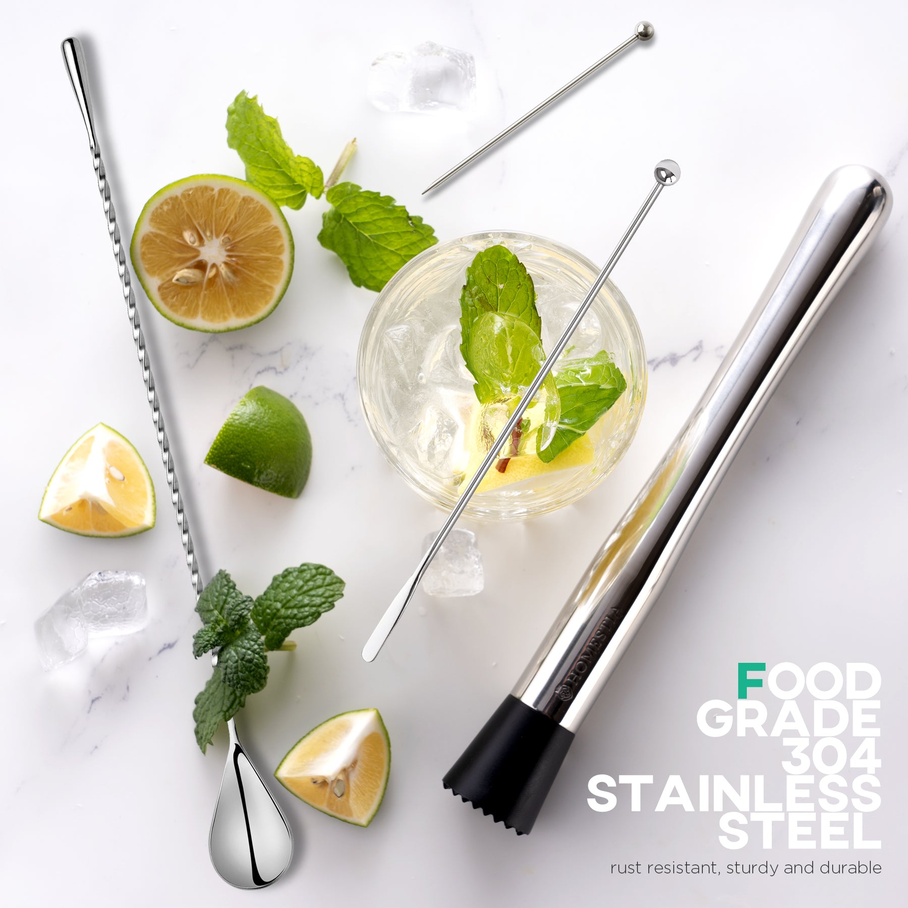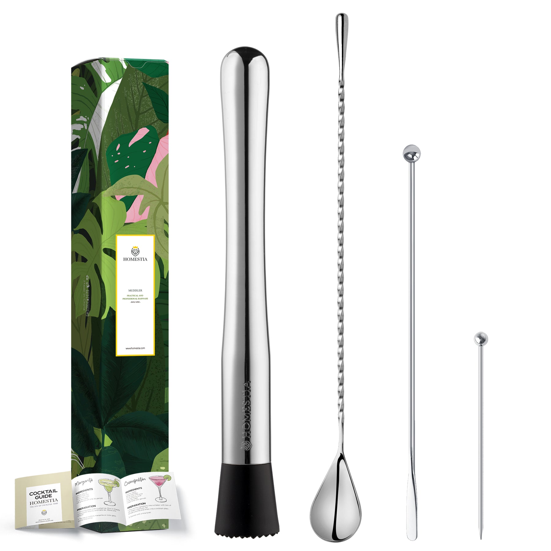 Homestia 4 PCS Stainless Steel Cocktail Muddler Set, Bar Spoon, Swizzle Stick, Cocktail Pick