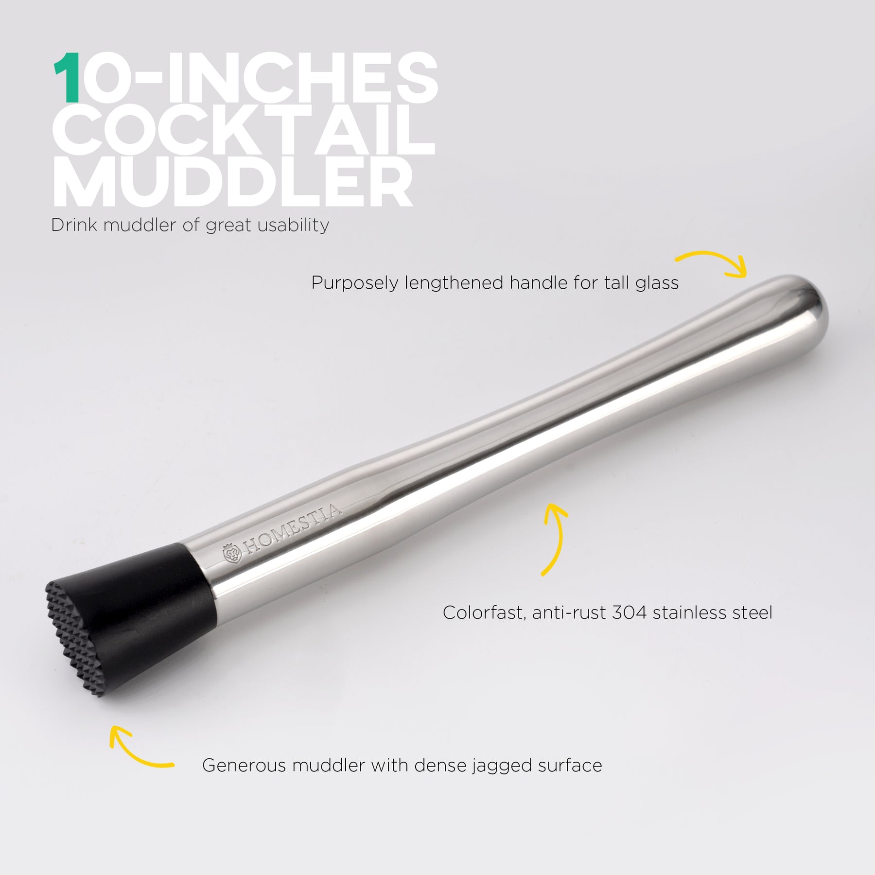 Homestia Stainless Steel Cocktail Muddler with Slim Waisted Handle, 4PCS Set, Bar Spoon, Swizzle Stick, Cocktail Pick