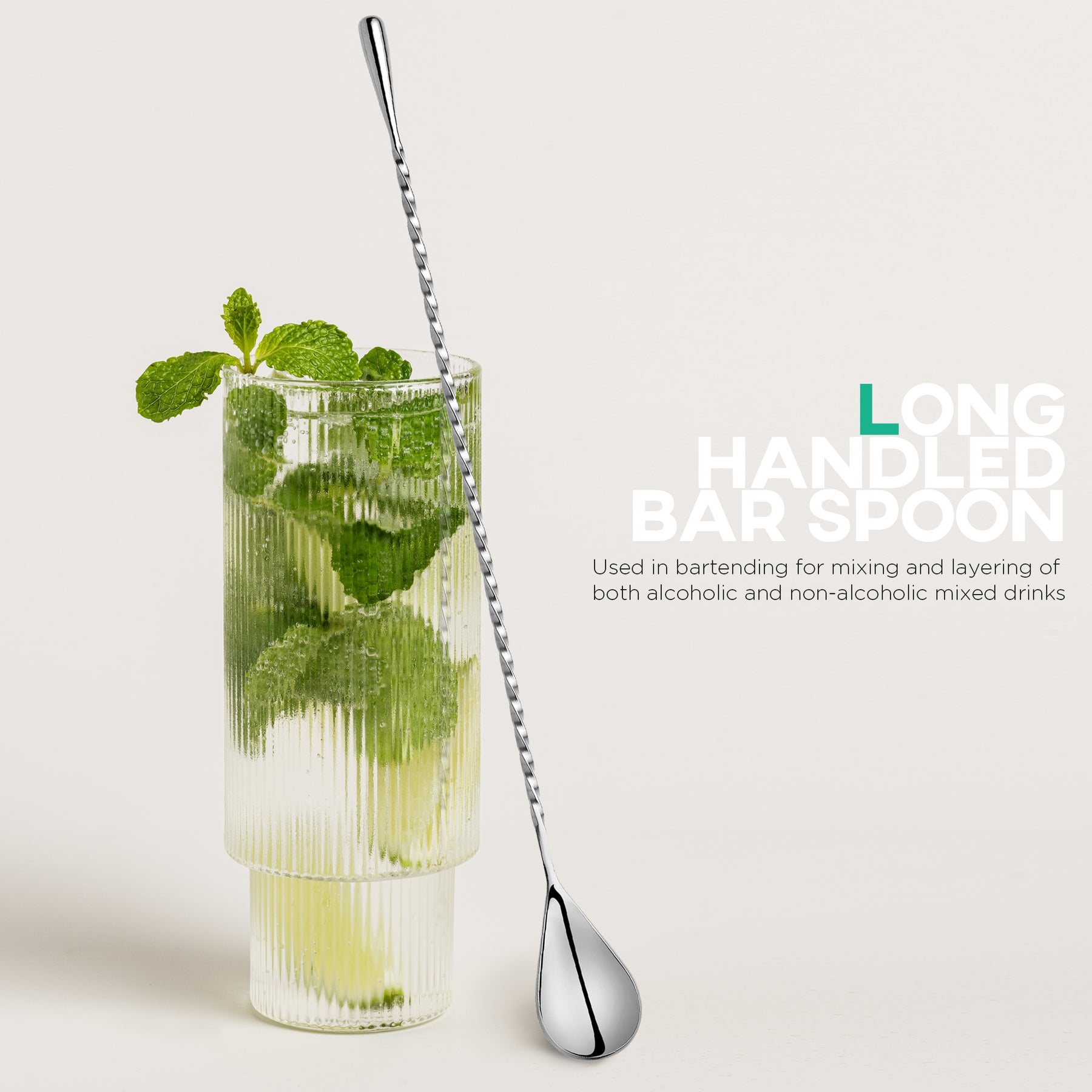 Bar Spoon: 12" (30cm) long, 1.2" (3cm) wide.