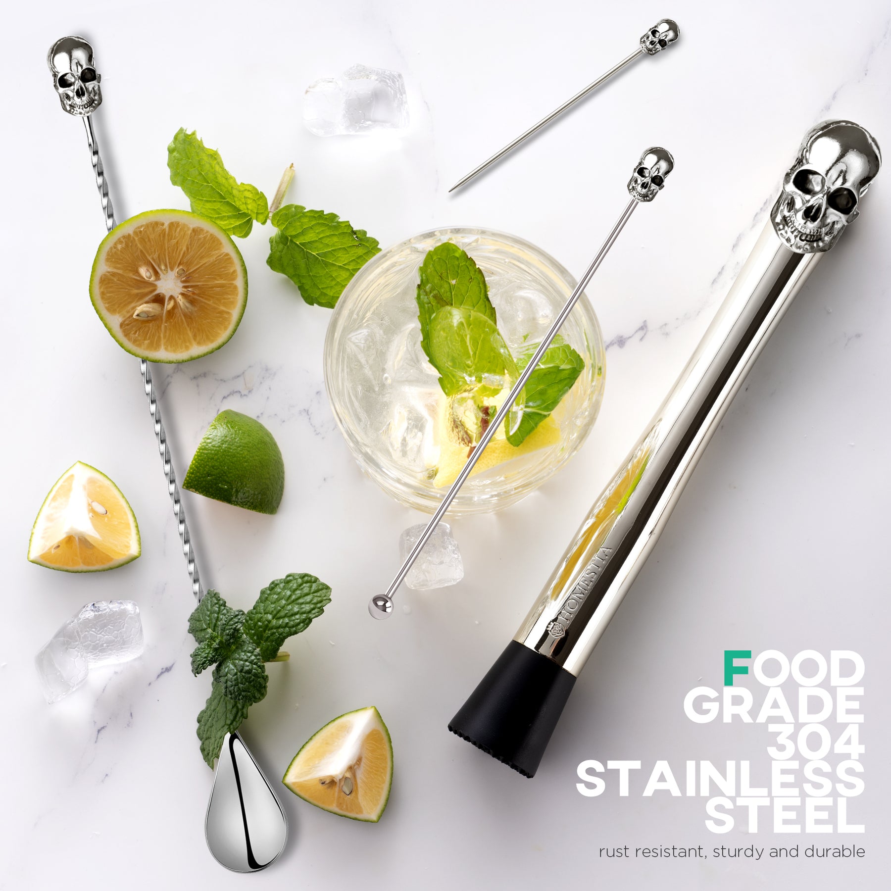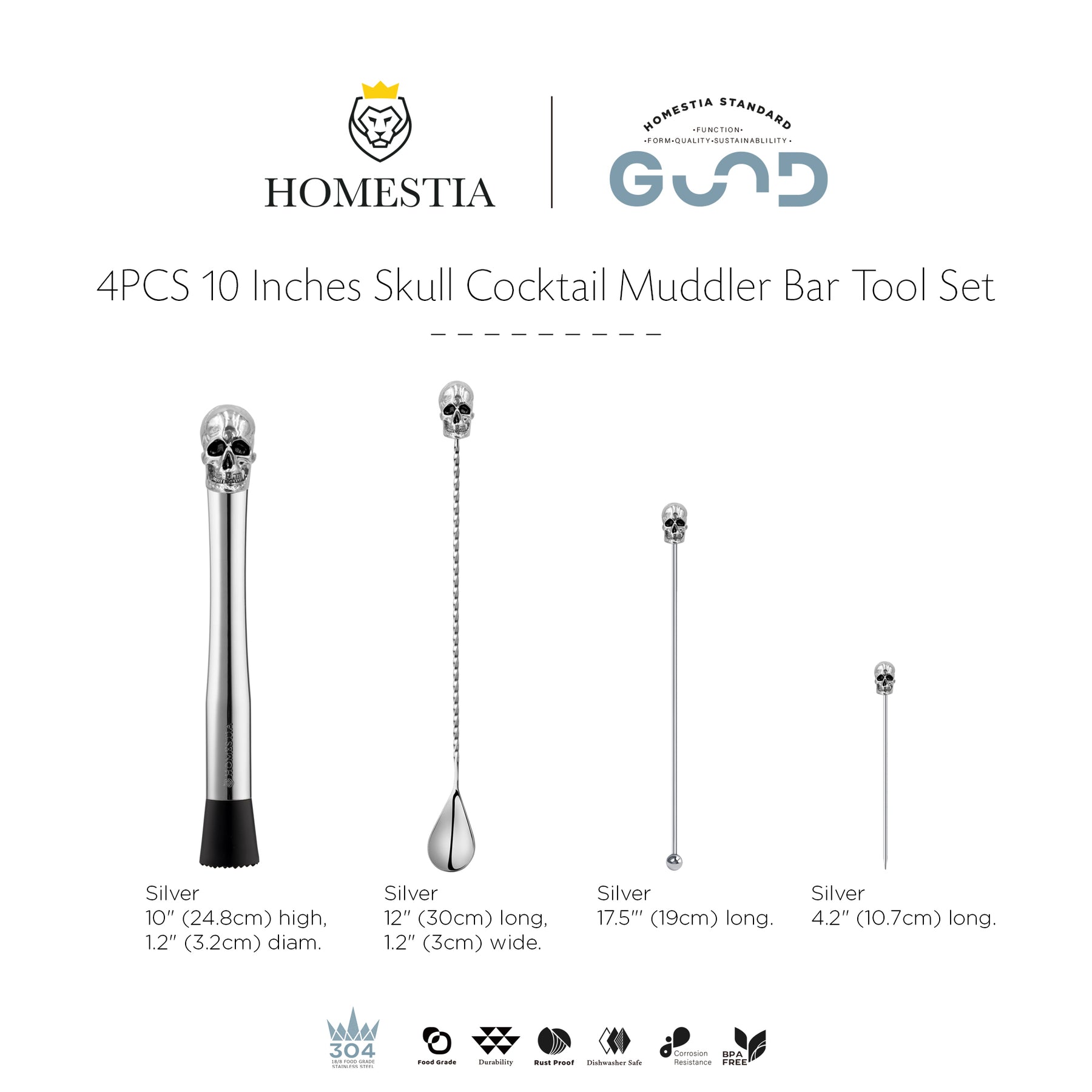Homestia 4PCS Stainless-Steel Skull Cocktail Muddler Set