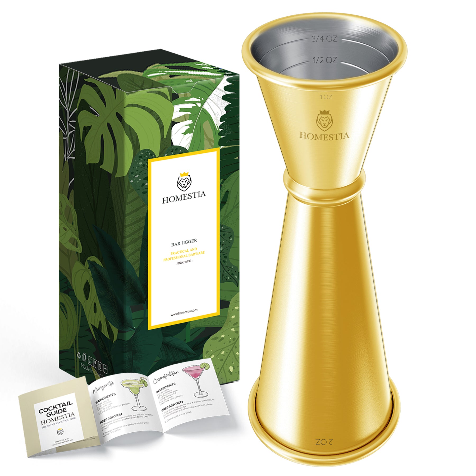 Homestia Stainless Steel Gold Bell Jigger 1oz / 2oz, 1 Pourer