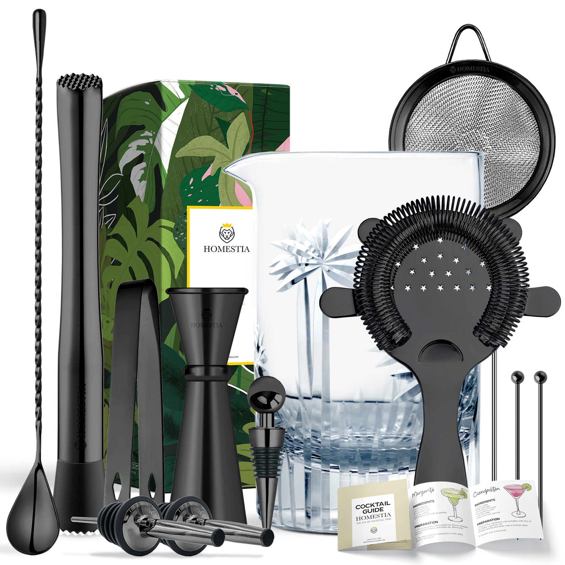 Homestia 12PCS Black Cocktail Mixing Glass Set