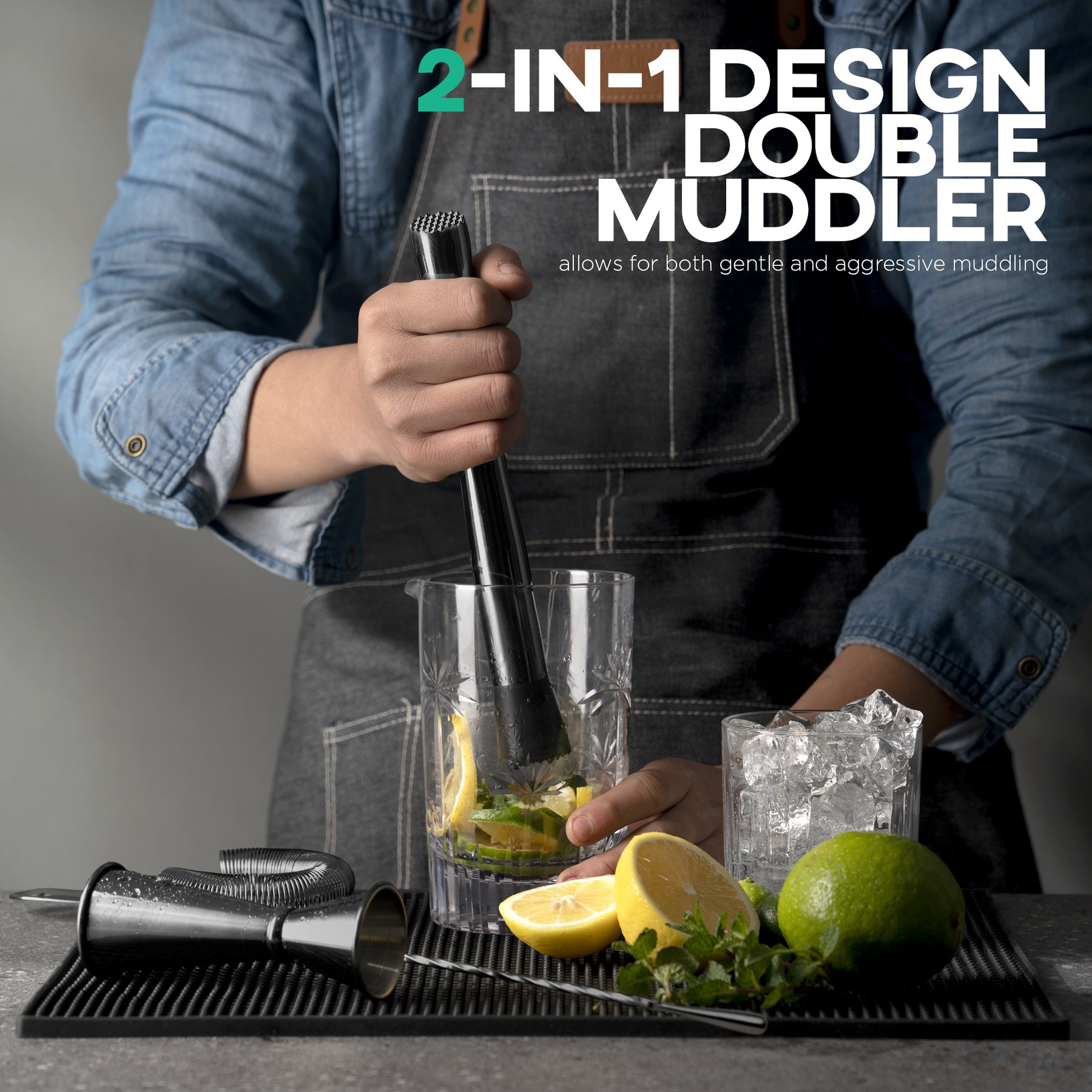 • Muddler * 1: 10" (24.8cm) high, 1.2" (3.2cm) diam.